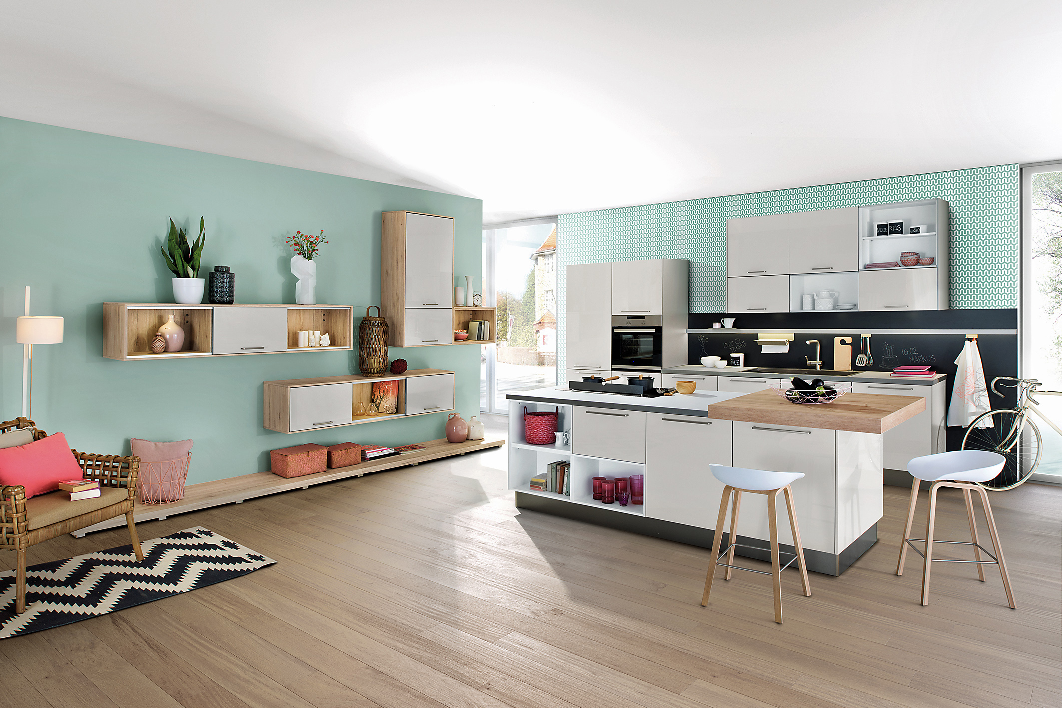 Auch im offenen Grundriss machen Einbauregale die Küche wohnlich und gemütlich. (Foto: AMK)