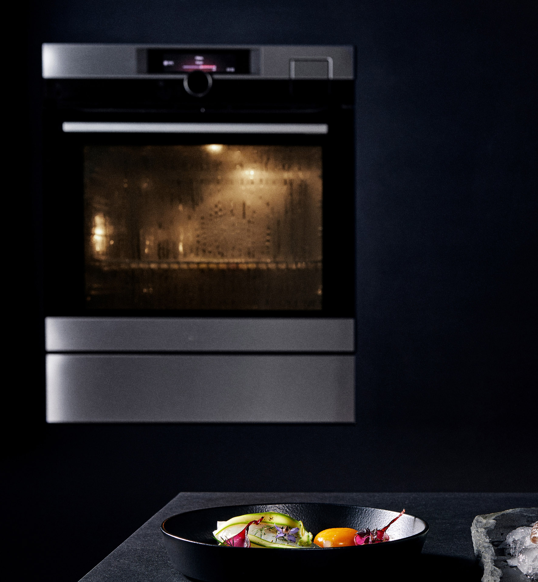 Bei der sehr aromaintensiven Sous-vide-Methode werden die frischen und rohen Lebensmittel erst gewürzt oder zuvor mariniert, dann in einem Vakuumbeutel versiegelt und anschließend bei optimaler Temperatur präzise und kontrolliert gegart. Ist der Prozess beendet, wird der Vakuumbeutel geöffnet, der aromatische Gemüse-, Fisch- oder Fleischsaft aufgefangen und daraus eine Soße zubereitet. Soll ein fertig gegarter Braten auch noch eine leckere Kruste und intensive Röstaromen bekommen, wird er kurz in der Pfanne von allen Seiten scharf angebraten. Übrigens, auch Obst, Teigwaren, Getreide- und Hülsenfrüchte lassen sich ganz hervorragend in einem dieser neuen Einbaugeräte mit Steam-Technologie zubereiten.
