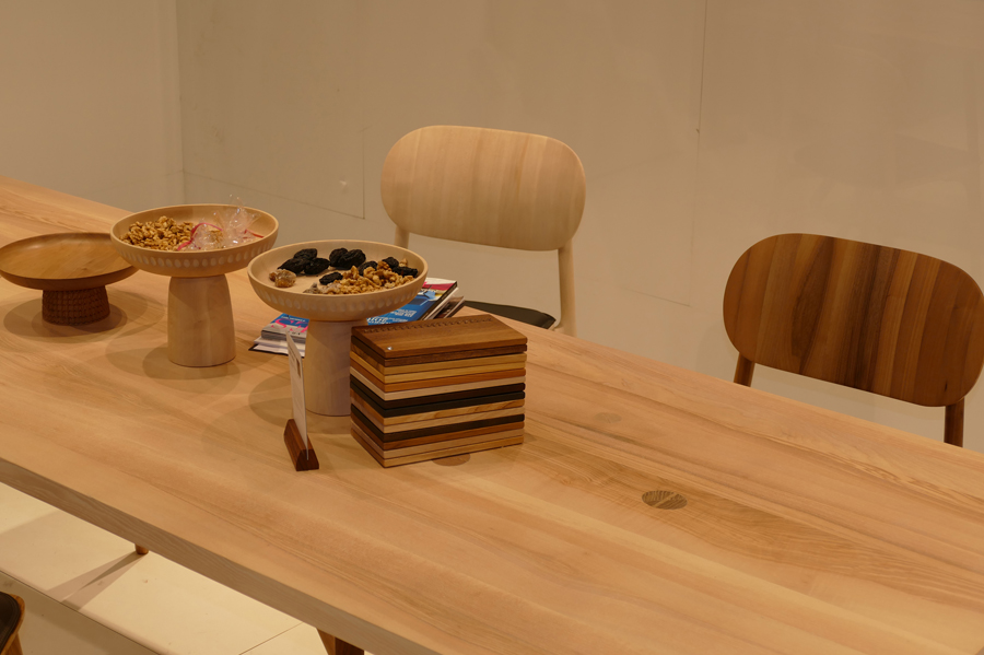 Auffällig: Zwei Trends bei Tischen! Erstens der steigende Anteil von Massivholz und zweitens neue Lösungen für Tischbeine. Massivholztischplatten werden vor allem in Eiche und Nussbaum angeboten und nun aber auch gerne mit bunt lasierten Tischbeinen oder Metallgestellen kombiniert. Massivholz muss also nicht mehr naturbelassen und holzfarben sein. Die Natursehnsucht erfährt eine Neuinterpretation mit Hilfe von Farben. Bei den Tischbeinen sind den Designern neuartige Lösungen eingefallen. Beispielsweise gibt es Tischbeine, die sich überkreuzen oder solche, die krumm aussehen, natürlich ohne an Stabilität zu verlieren.