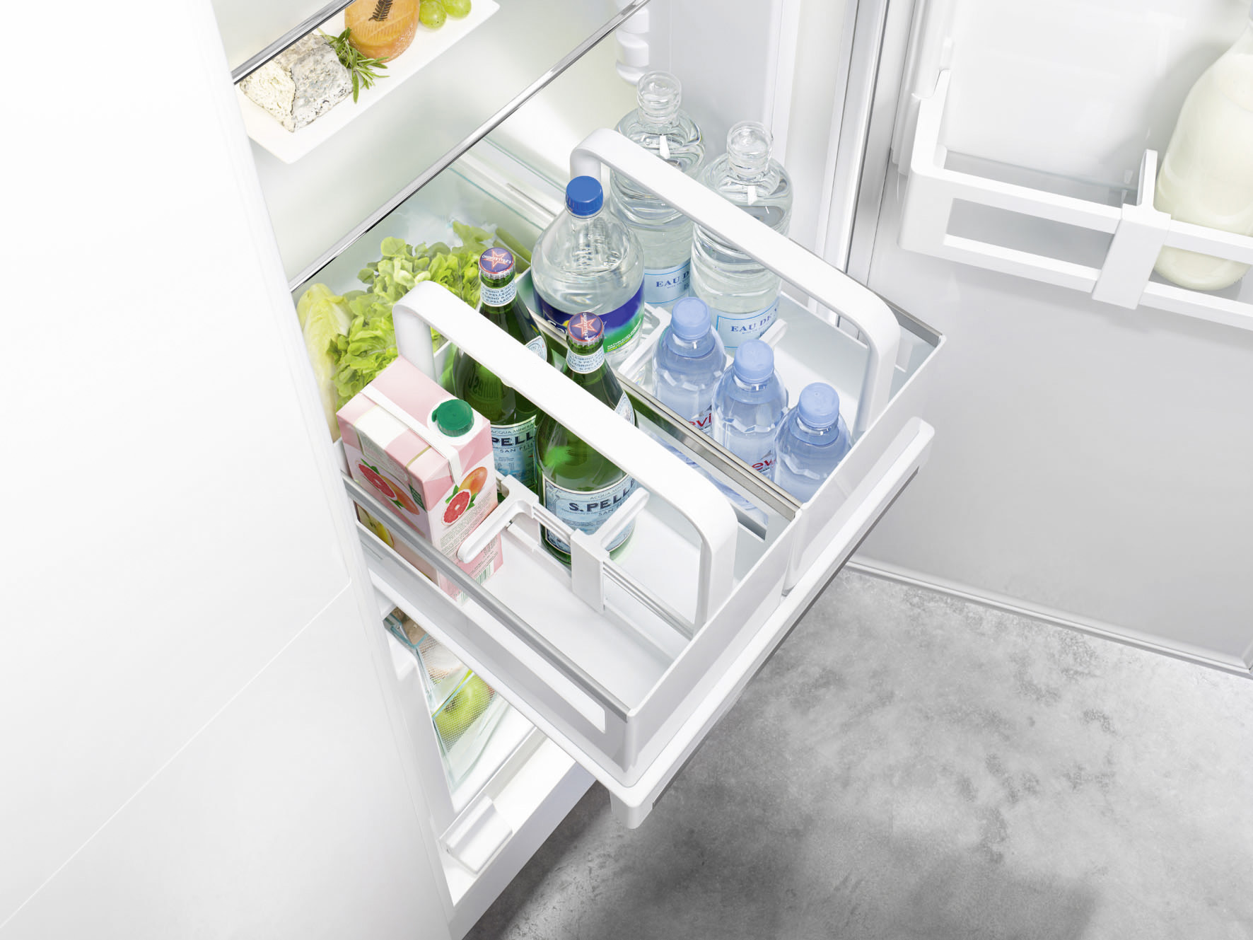 Gut durchdacht und praktisch sind z.B. auch unterschiedlich große Behälter, die nach dem Baukastenprinzip zusammengestellt und einfach in die Innentür des Kühlschranks eingehängt werden. Sie lassen sich an die jeweilige Art und Anzahl der Lebensmittel flexibel anpassen und immer wieder neu organisieren. Für Ergonomie und Bedienkomfort sorgen u.a. Frische-Schubfächer, die ihren Nutzern auf Teleskopauszügen schwebeleicht entgegenkommen. Und damit im Kühlschrank stets eine angenehm frische und keimfreie Luft herrscht, kommen antibakterielle Hygiene-Filter oder Ionisation zum Einsatz – negativ geladene Ionen, die unangenehme Gerüche neutralisieren und Bakterien beseitigen.