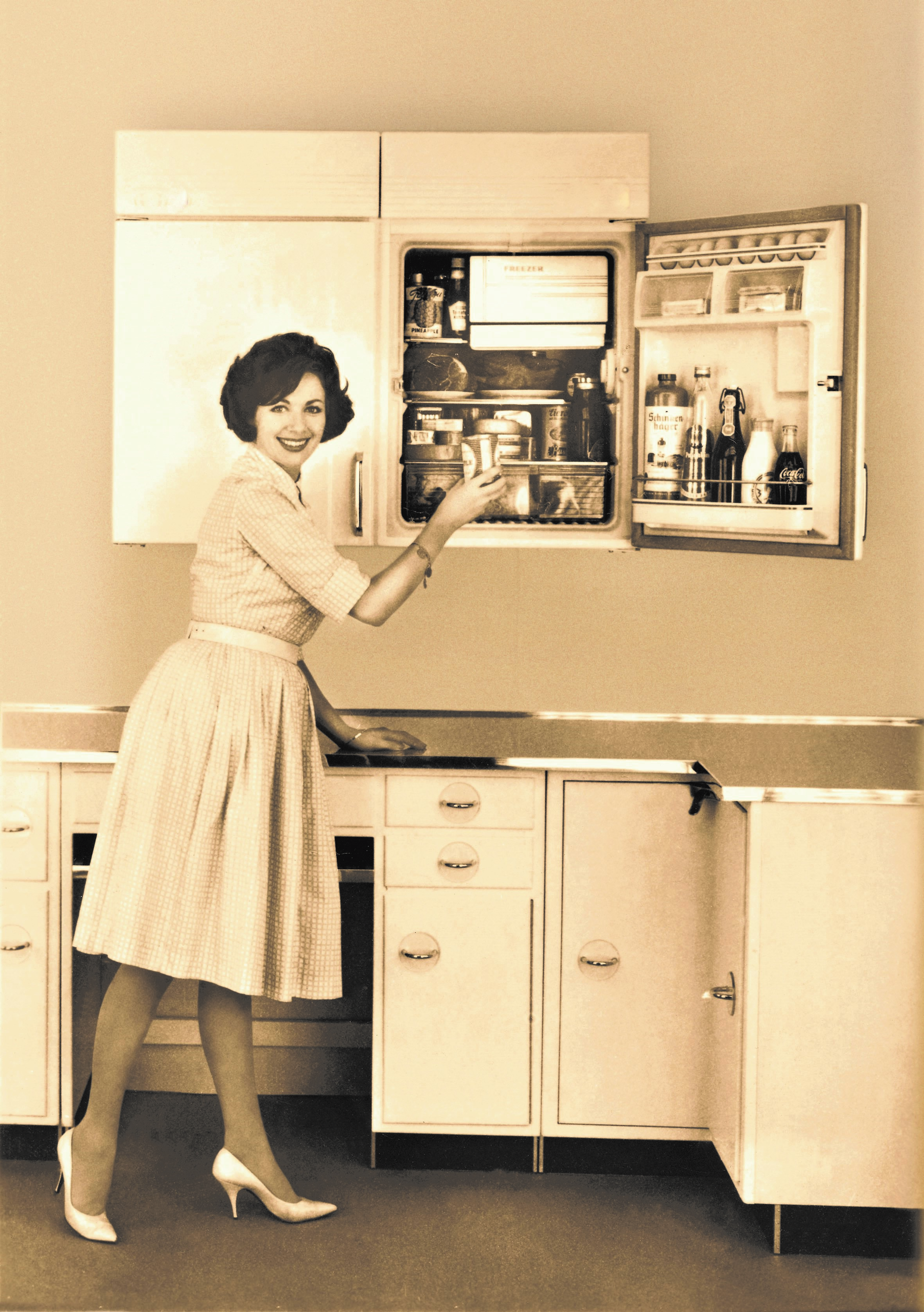 Foto 2: Mit der Weiterentwicklung des Kühlschranks reduzierte sich die Kaufhäufigkeit von Lebensmitteln. Hausfrauen und Kinder waren froh über die hinzugewonnene Zeit. (Foto: AMK)