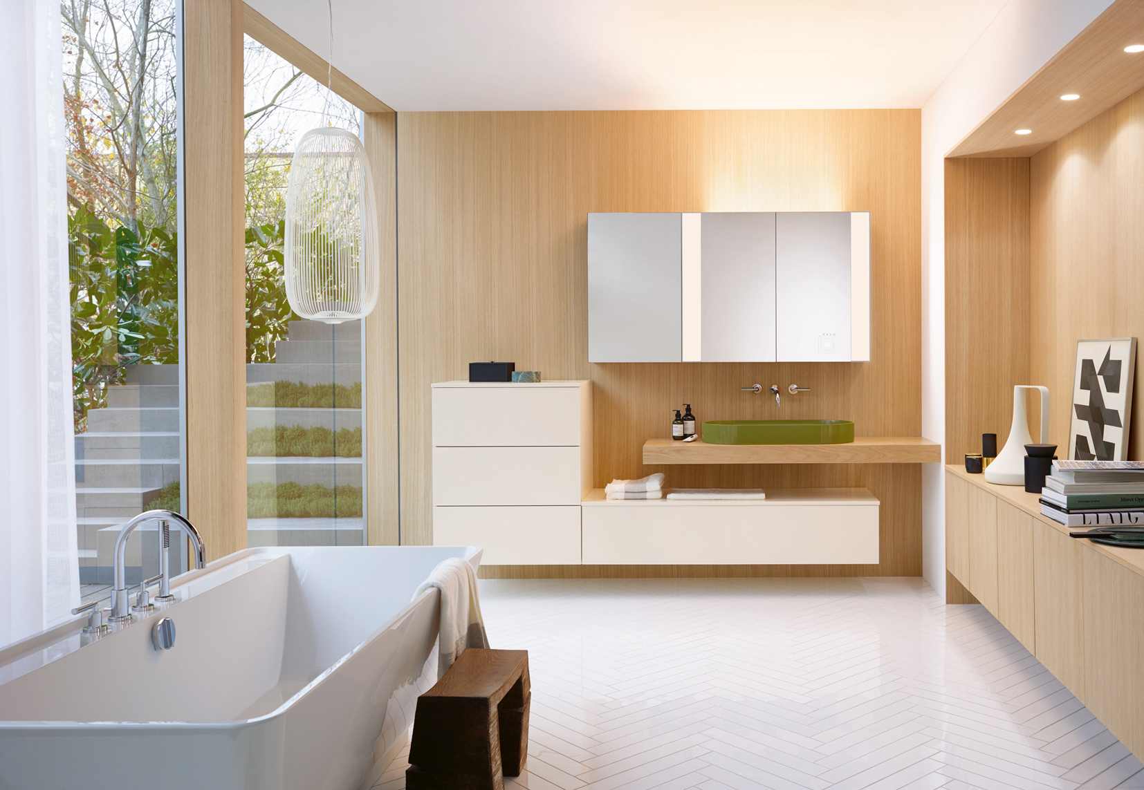 Im Möbelbereich ist ganzheitliches Interior Design statt technisch wirkendem Produktdesign angesagt. Modulare Badmöbel, die individuell geplant werden, sind im Kommen. Das kann ein Solitär mit Waschtisch sein, ein Spiegelschrank mit eingebautem LED-Licht, ein Hochschrank mit Apothekerauszug ähnlich wie in der Küche. Eine Sitzgelegenheit, gerne auch eine Bank für zwei Personen, darf im modernen Bad nicht fehlen. Einmal zur Entspannung, aber auch zum bequemen Socken anziehen oder Schuhe schnüren. Das Badezimmer wird wie alle anderen Bereiche des Wohnens wohnlicher, gemütlicher und behaglicher und entwickelt sich zum Lieblingsraum für entspannte Stunden.