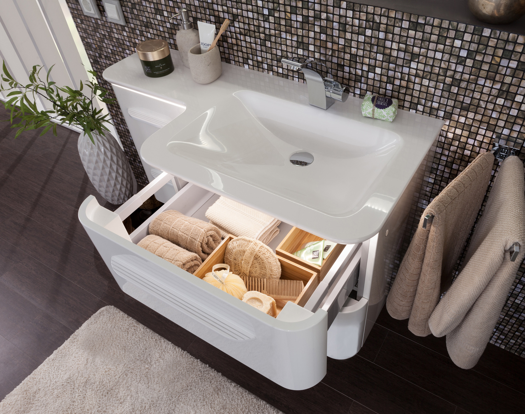 Foto 2: Der Vollauszug mit Softeinzug ist im modernen Badezimmer bei Schubladen mehr und mehr angesagt. Foto: VDM/Lanzet.