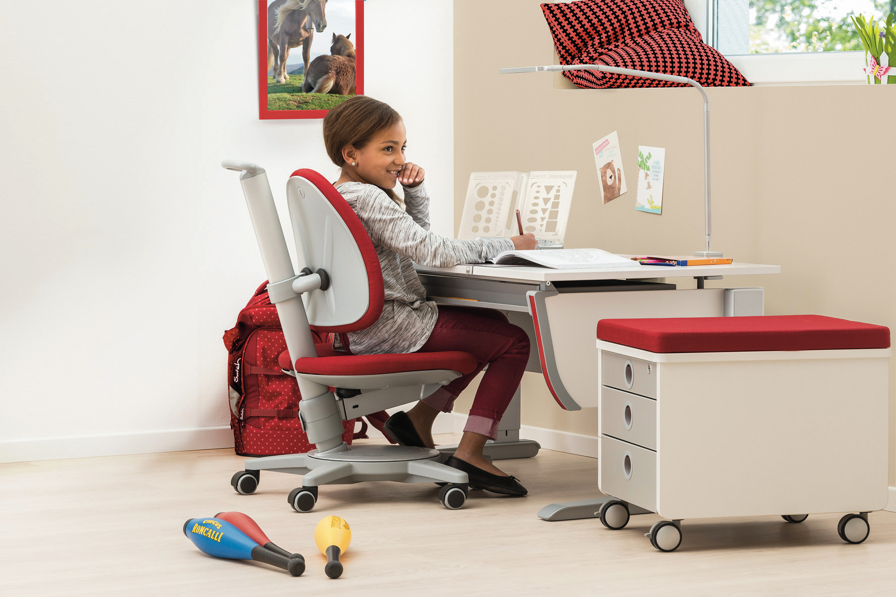 Neben dem schönen und einladenden Aussehen des Kinderzimmers müssen Kindermöbel gut funktionieren. Der höhenverstellbare Schreibtisch, das verlängerbare Bett, der erweiterbare Schrank… Alles in Kombination mit einer fantasieanregenden Gesamteinrichtung und das Imperium der Kleinen, welches nach Berechnungen eines großen Handelshauses in Deutschland durchschnittlich 15 m² groß ist, wird vollständig.