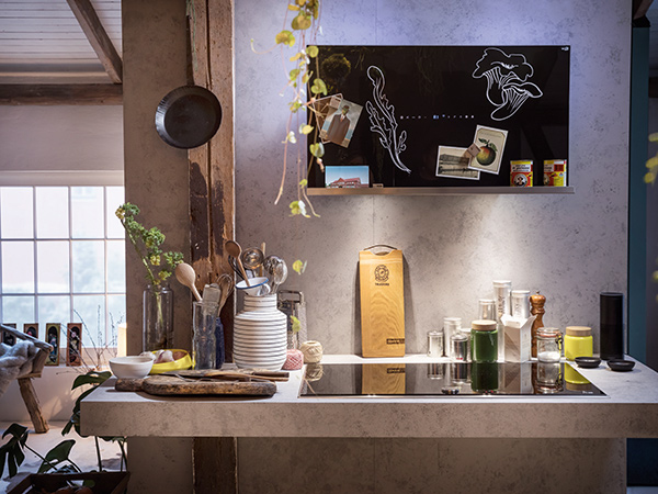 Mehr Lifestyle lässt sich auch durch eine neue Nischenrückwand erzielen. Sie kann in der Regel auf den in vielen Haushalten vorhandenen Fliesenspiegel aufgeklebt werden, dessen Fugen mitunter im Lauf der Jahre Schmutz angesetzt haben. Die Hersteller bieten unterschiedlichste Dekore an – sei es beispielsweise in Naturstein- oder Ziegelsteinoptik, mit Ornamenten, mit textilen Mustern oder im Industrial-Style. Als Hingucker eignen sich auch attraktive Rückwände aus Glas oder auf Acryl-Basis. Die Bandbreite der aufgedruckten Motive reicht von Bäumen, Kaffeebohnen, Gemüsen oder Kräutern über Strandaufnahmen bis hin zu Mandala- oder Fliesenmustern. Besondere Akzente lassen sich mit einem innovativen, hinterleuchteten Wechselrahmen setzen, der verschiedene Lichtstimmungen erzeugen und mit immer wieder neuen Motiven ausgestattet werden kann. Verfügbar sind auch Rückwände aus Metall, etwa aus gebürstetem Edelstahl, oder aus Holz. Besonders für Familien geeignet ist die originelle Idee, Nischenwände als Kreidetafeln zu gestalten. Darauf können dann Einkaufslisten oder Rezepte notiert werden. Wer weiterhin auf klassische Wandfliesen setzen möchte, kann zu den angesagten, nostalgisch anmutenden Metro-Fliesen greifen. Beliebt sind derzeit auch großformatige Fliesen, etwa in Betonoptik.