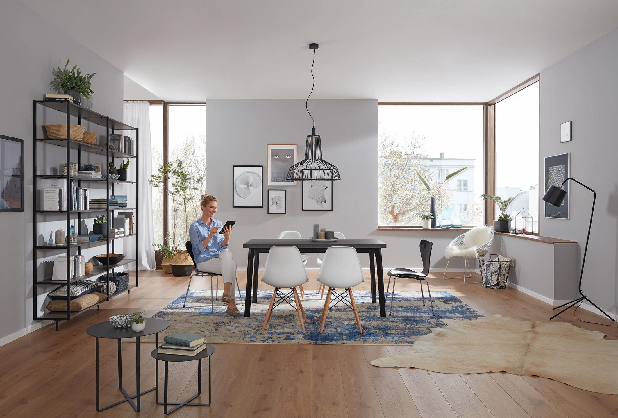 Die unterschiedlichen Funktionsbereiche strukturieren eine Küche, und diese Raumarchitektur lässt sich durch adäquate Lichtquellen betonen sowie als harmonisches Gesamtbild inszenieren. Licht hat darüber hinaus Einfluss auf das Wohlbefinden und kann mittels Farbtemperatur und Intensität aktivieren oder beruhigen. Eine netzwerkfähige Steuerungstechnik verbindet unterschiedlichste Farbwechsel-LED-Leuchten miteinander. (Foto: AMK)