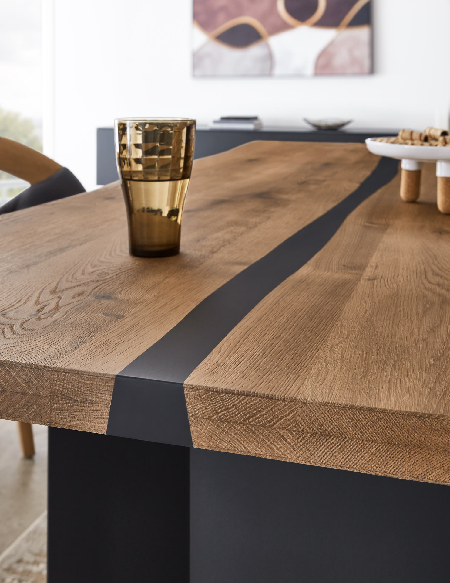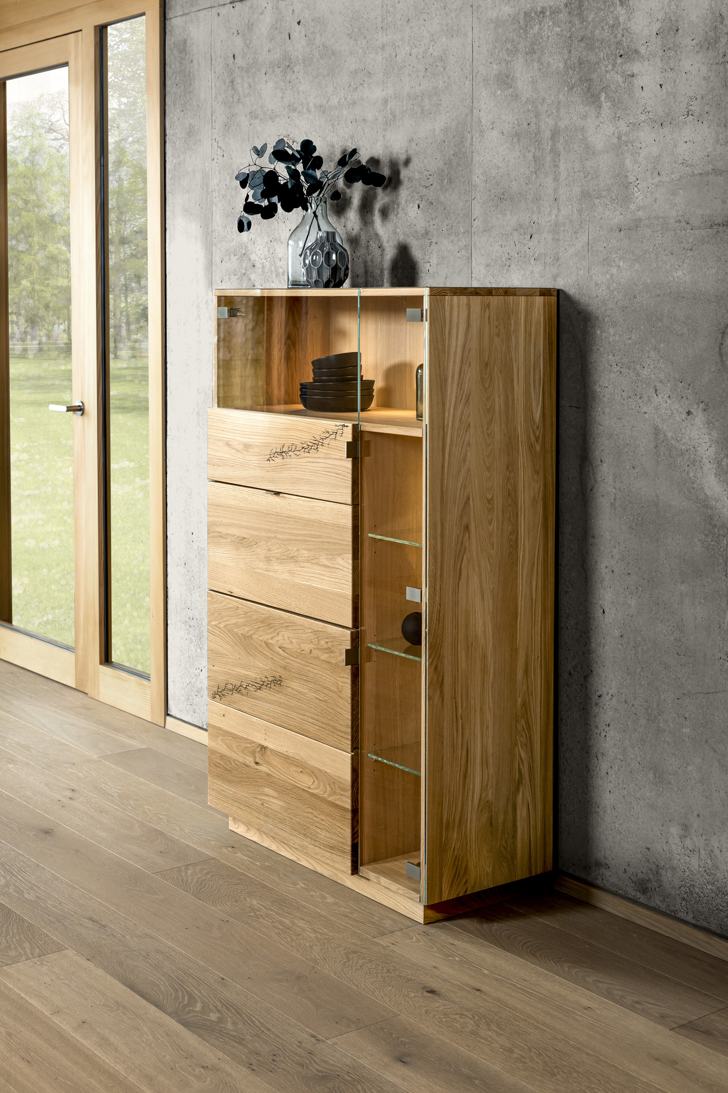 Manche Holzarten besitzen auch sehr auffÀllige Stirnholzseiten wie beispielsweise Eichenholz. IPM/Wimmer Wohnkollektionen