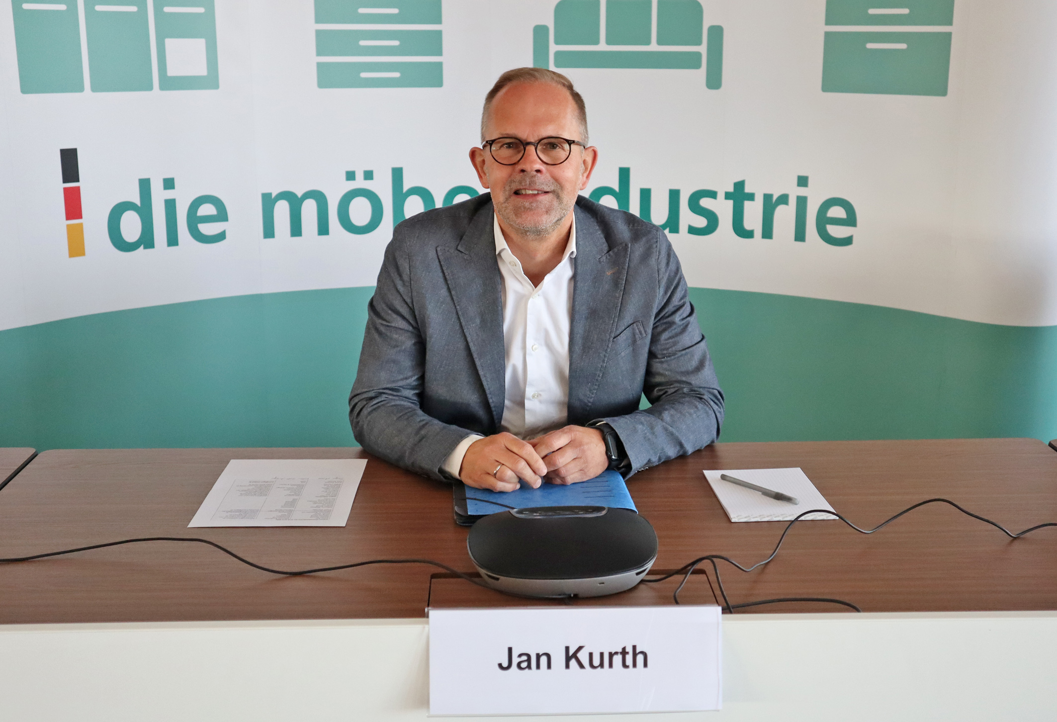 Jan Kurth, Geschäftsführer der Verbände der deutschen Möbelindustrie (VDM/VHK), bei der Jahres-Wirtschaftspressekonferenz heute in Köln. Foto: VDM/VHK