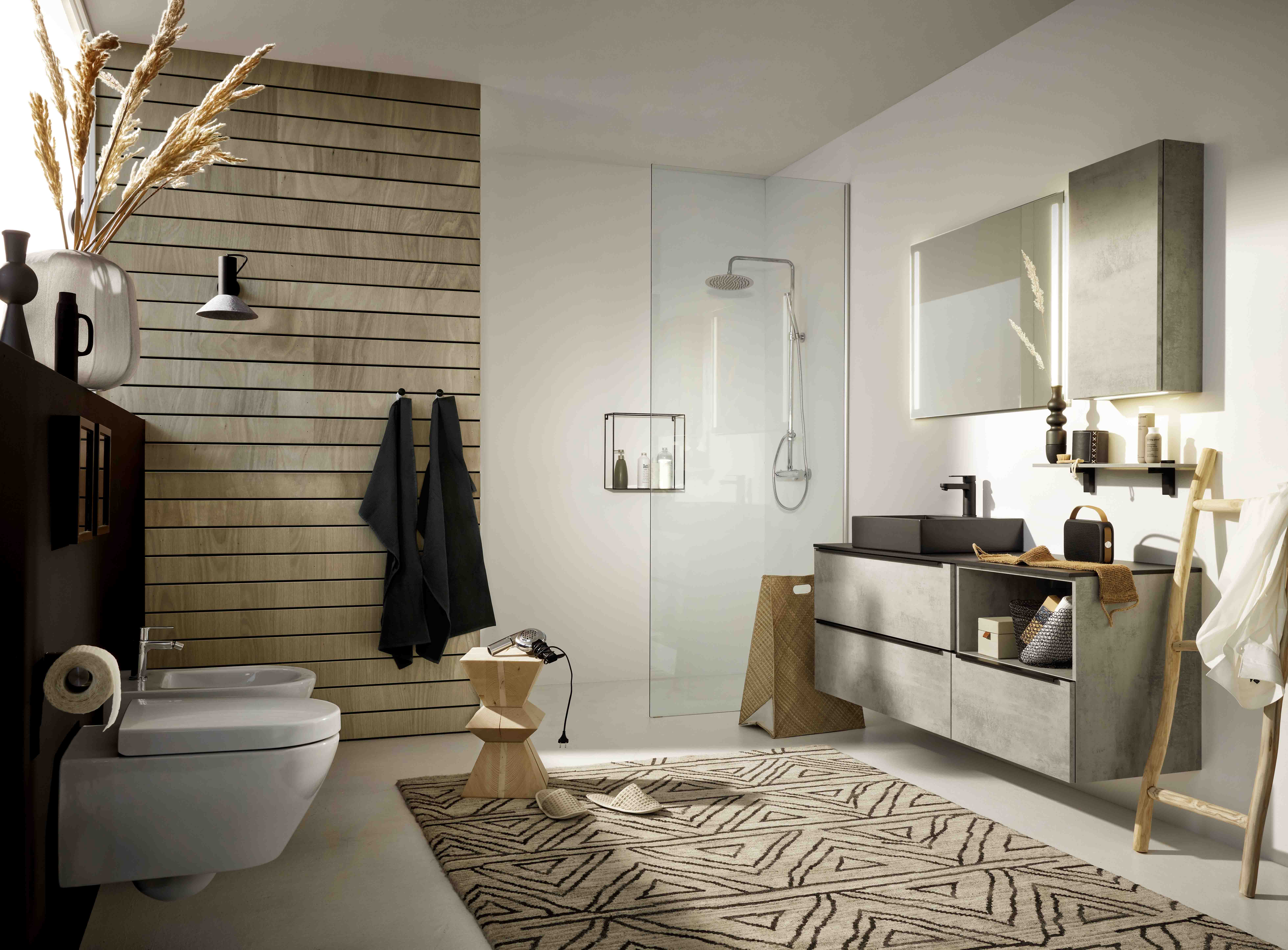 Mit natürlichen Materialien und eleganten Möbeln wird das Bad zum behaglichen Lifestyle-Rückzugsort