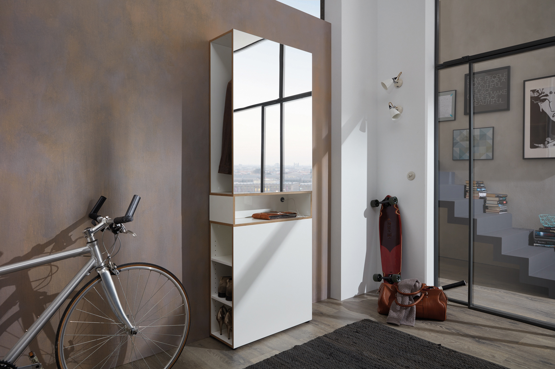 Foto 2: Verspiegelte Garderoben lassen auch kleiner Flure größer wirken und erfüllen so gleich mehrere Zwecke. Foto: Germania/VDM