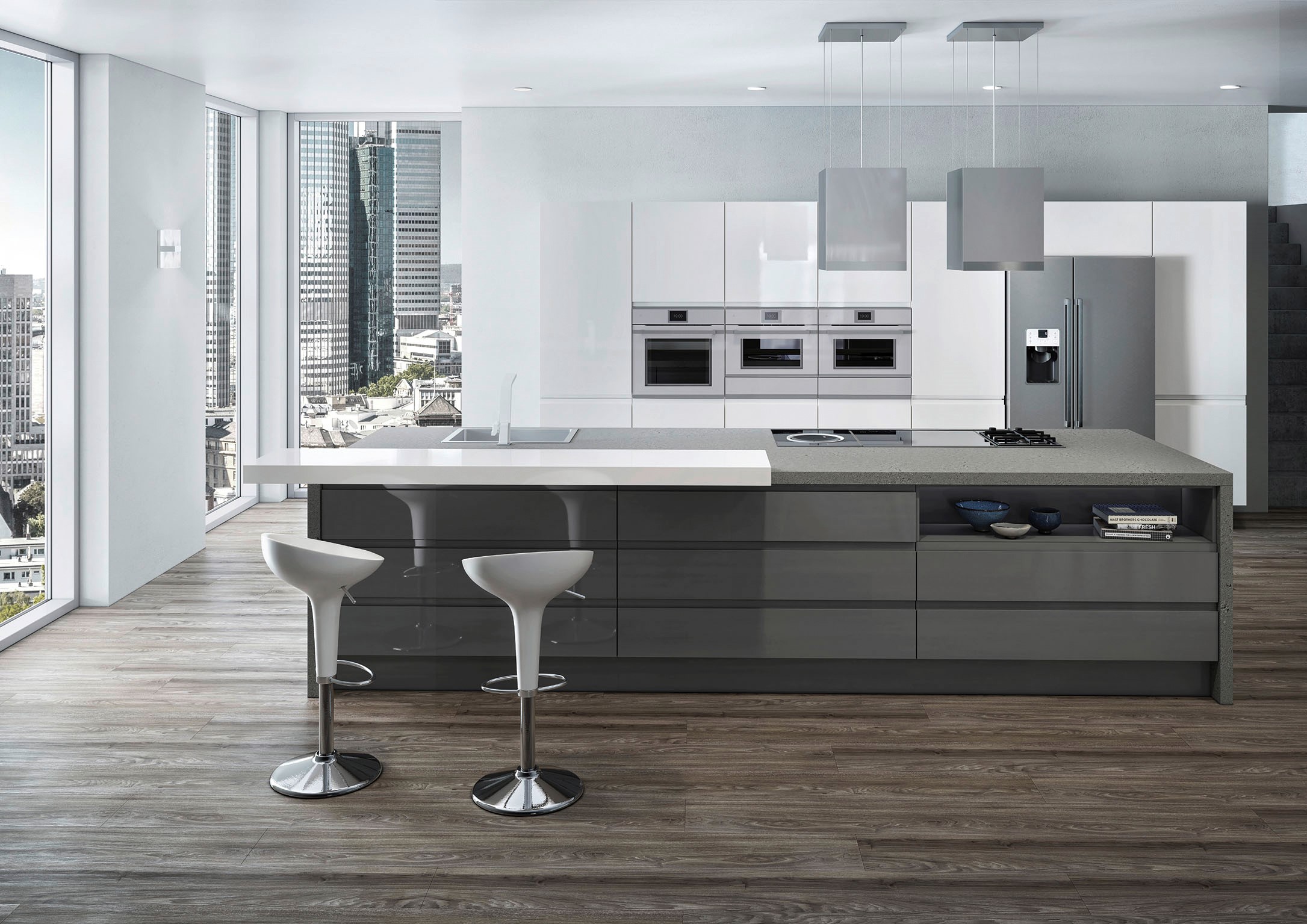 Ein anderer Blickfang in den neuen Lifestyle-Wohnküchen ist eine Einbaugeräte-Range in edlem Grau. Der attraktive und auch neutralisierende Farbton steht für Understatement, Seriosität und Kompromissbereitschaft. Grautöne aller Abstufungen, von Zartgrau über Mittelgrau bis tiefstes Dunkelgrau, lassen sich – wie das neue, satte Schwarz – ebenso hervorragend mit Hölzern, Natursteinen, Echtmetallen und Glas sowie all deren HighTech-Nachbildungen kombinieren.