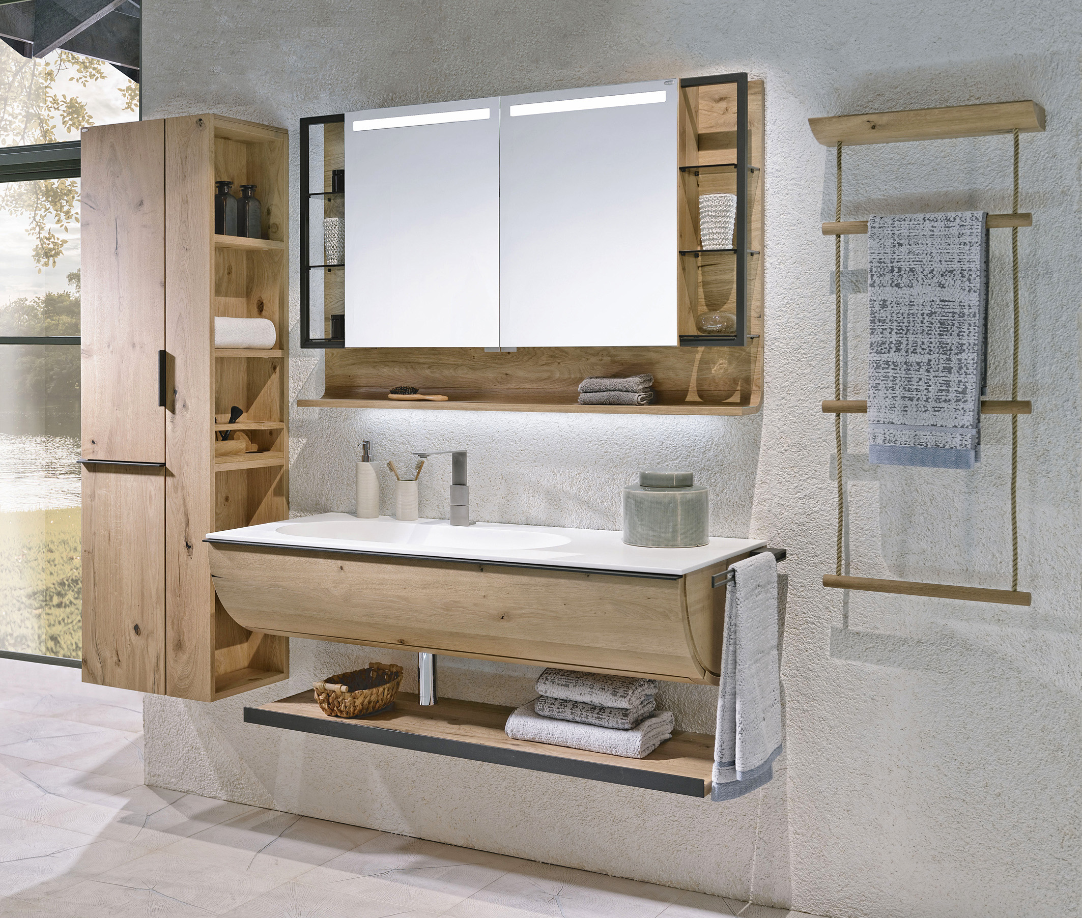 Durchschnittlich verbringen Frauen täglich 47 Minuten im Bad, Männer 35 Minuten. Diese Zeit nutzen Männer wie Frauen ganz individuell zur Reinigung und Pflege des eigenen Körpers und auch des Geistes – denn wer seinem Körper etwas Gutes tut, erfreut auch die Seele. Dabei hat das Badezimmer heute nichts mehr mit der Nasszelle von früher zu tun. Auf durchschnittlich neun Quadratmetern bietet sich genug Platz für Notwendigkeiten wie Dusche, Waschbecken und WC, aber auf Wunsch auch für eine Badewanne und natürlich für Möbel, die den Raum erst richtig wohnlich machen. „Hochwertige Möbel verleihen dem eigenen Zuhause Stil, Charakter und Gemütlichkeit. Im Badezimmer müssen sie höchsten Ansprüchen genügen, denn hier sind hohe Feuchtigkeit und Spritzwasser an der Tagesordnung“, weiß der Möbelexperte.