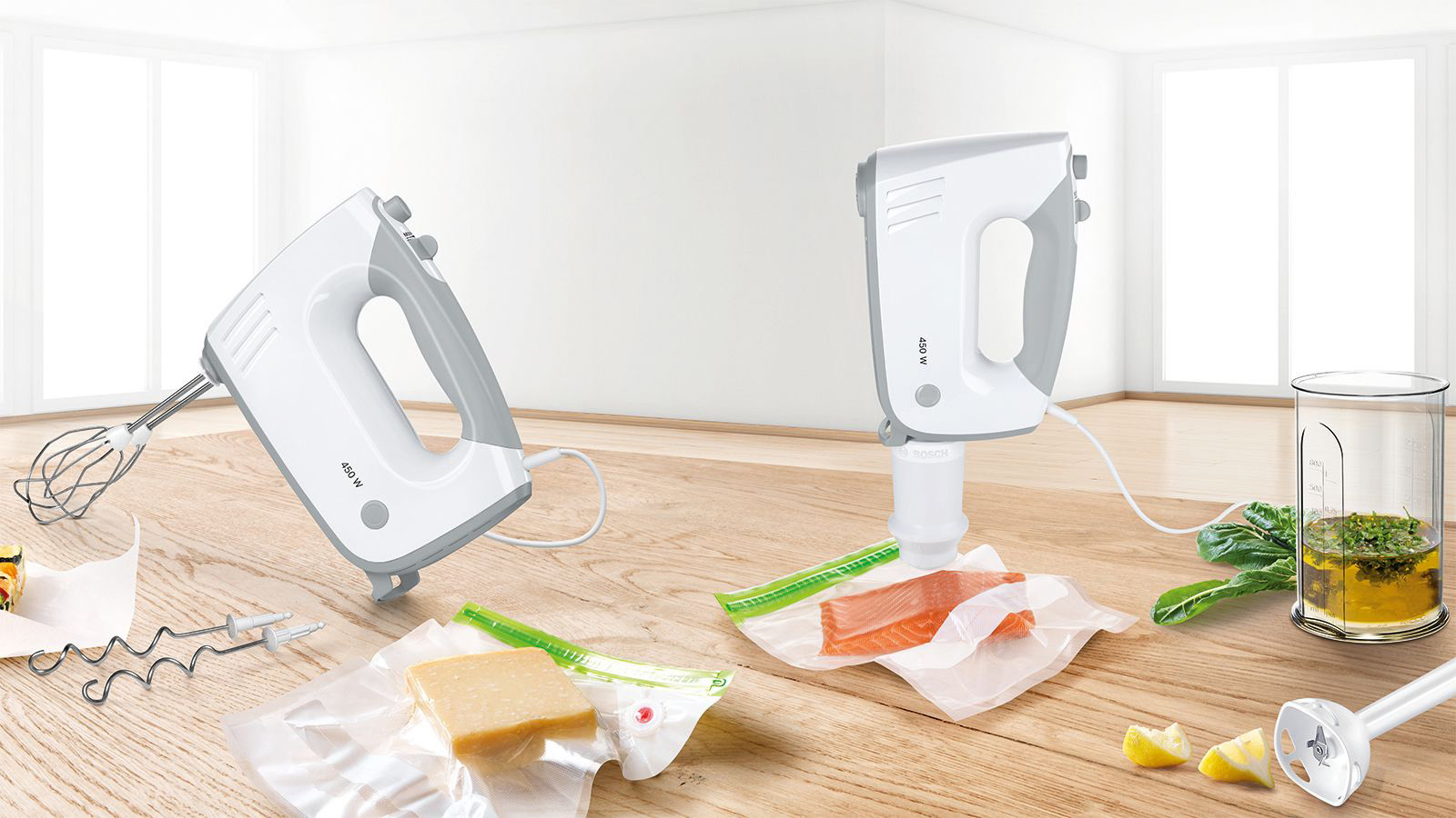Hoch funktional sowie ergonomisch bis ins kleinste Detail ausgetüftelt, das sind die attraktiven Marken-Küchenhelfer heute alle. Ein großer Funktionsumfang gehört ebenso zu ihrer Ausstattung wie die Möglichkeit zu Konnektivität bei vielen Neuheiten. Manch Kleiner bietet sogar verschiedene Anwendungsnutzen mit einem einzigen Gerät: zum Beispiel ein Handrührer, der sich mithilfe des Zubehörs in einen Stabmixer oder ein Vakuumiergerät verwandeln lässt. Eine feine Sache für die Zubereitungsmethode Sous-Vide-Garen oder zum Marinieren von Fleisch, Fisch oder Gemüse oder wenn Lebensmittel im Kühl- oder Gefrierschrank vakuumiert bevorratet werden sollen.
