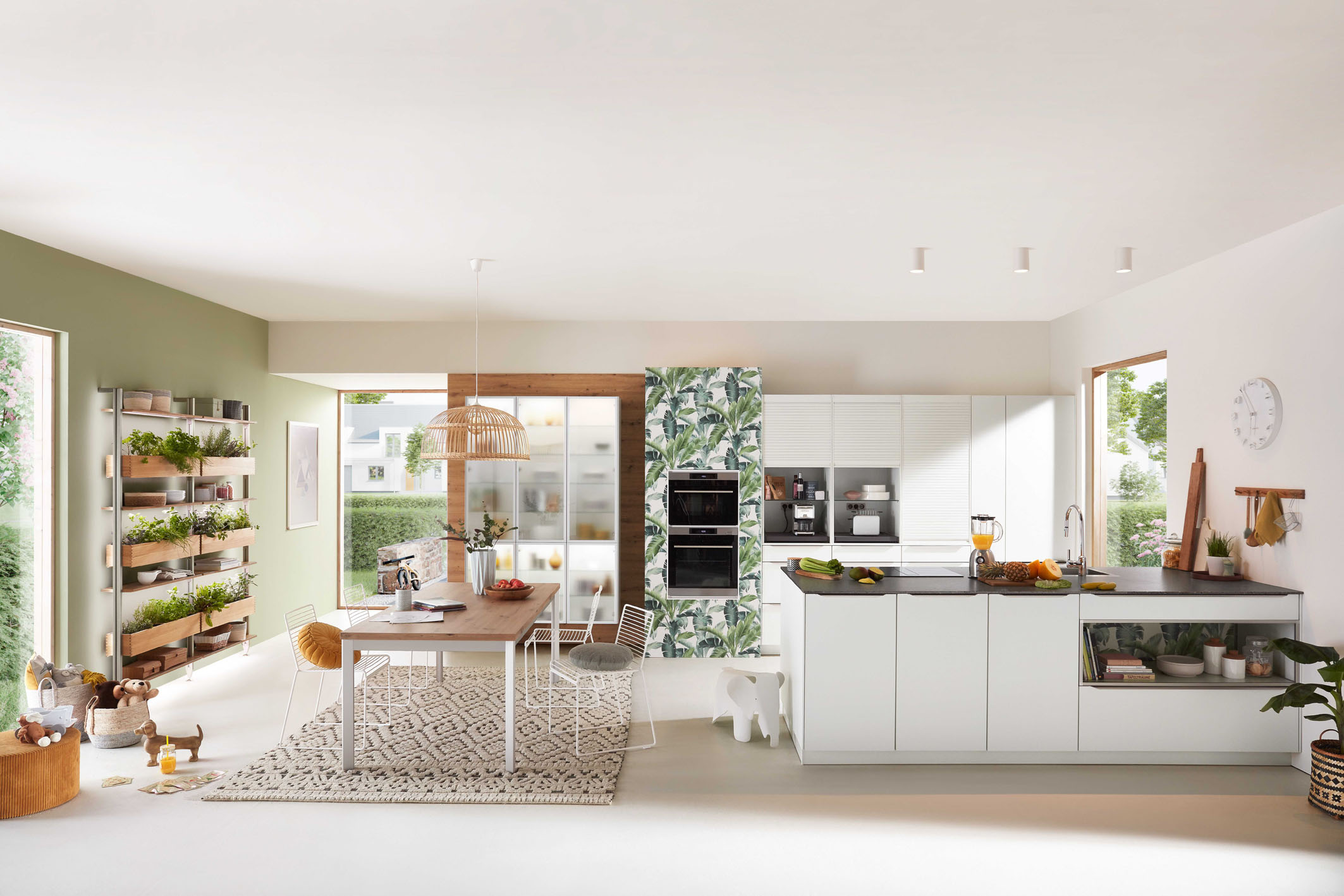 Sehr wohnlich und naturnah wirken die neuen Küchen allein schon aufgrund ihrer natürlichen Anmutung und exquisiten Farbabstufungen. Ein Beispiel hierfür sind optisch wie auch haptisch absolut authentisch wirkende Holzdekore. Die perfekten Partner dazu: Supermatte schwarze Fronten, kombiniert mit dunkel gemaserten Holznachbildungen. Derartige Material- und Farbkontraste und eine aufs Wesentliche reduzierte Linienführung verleihen diesen Küchen einen geradezu exklusiven Look. Um Fingerabdrücke, Abnutzungserscheinungen oder Reinigungsaufwand muss man sich keine Gedanken machen, denn viele der neuen supermatten Oberflächen punkten mit außergewöhnlichen Anti-Fingerprinteigenschaften. Eine spezielle Funktionsschicht macht sie zudem extrem widerstandsfähig.