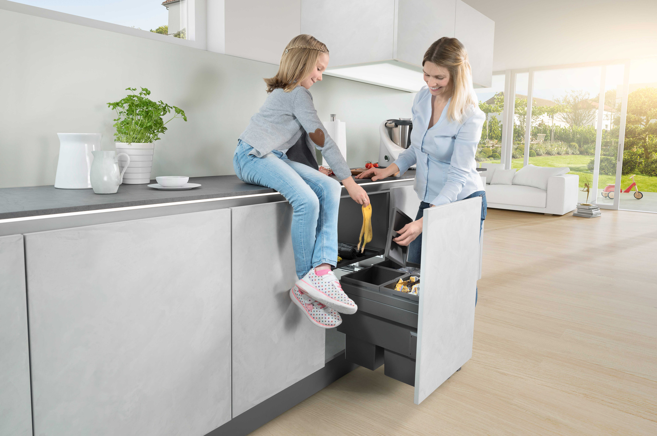 Angesichts dieser jüngsten Innovationen sollte jedoch nicht vergessen werden, dass die moderne Küche von heute bereits aus vielen nachhaltigen Komponenten besteht: das beginnt, wie gesagt, bei natürlichen und recycelbaren Materialien und reicht von ressourcenschonenden Hausgeräten bis in den Zubehörbereich hinein. Auch hier finden sich viele nachhaltige Beispiele wie wasser- und energiesparende Küchenarmaturen, zu 100 Prozent recycelbare Spülen, sehr langlebige Qualitätsbeschläge, Innenorganisations- und Abfalltrennsysteme oder sparsame und recycelbare LED-Leuchten, um nur einige zu nennen.                                         Â