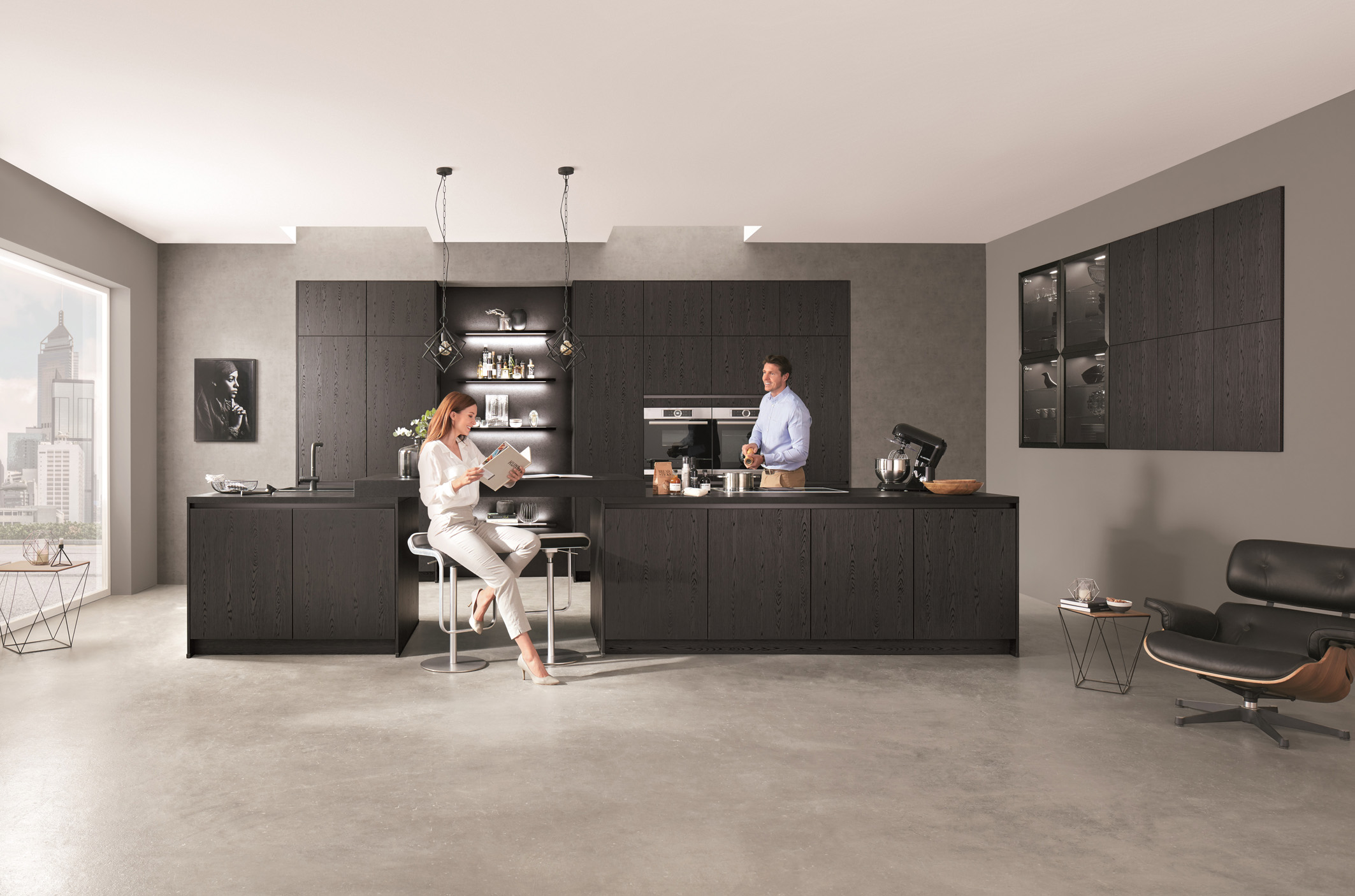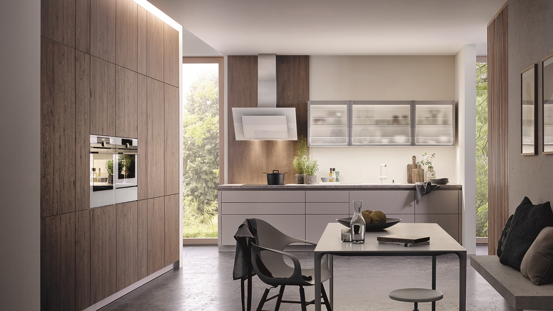 Ein zentrales Thema bei der Konzeptionierung einer neuen Küche ist die Stauraumplanung. So ist zunächst zu klären, wieviel Platz benötigt wird, um Geschirr, Besteck, Gläser, Kochutensilien und Gewürze unterzubringen. Sollen auch Lebensmittelvorräte, Tischwäsche, Kochbücher, Weinflaschen oder Getränkekisten verstaut werden – oder gibt es dafür eine andere Aufbewahrungsmöglichkeit, etwa in einem ebenfalls zu planenden Hauswirtschaftsraum? Falls eher wenig Stauraum erforderlich ist, können unter Umständen Unterschränke plus zierlichen Hängeregalen ausreichen, die mit Kräutertöpfen oder Wohnaccessoires dekoriert werden. Bei größerem Bedarf empfehlen sich Hoch-, Ober- oder Eckschränke mit ihren intelligenten Auszugssystemen. Auch bei der Entscheidung über die Form einer Küche ist der Platzbedarf mit ausschlaggebend. Statt einer einzeiligen oder L-förmigen Küche kann sich bei Haushalten mit mehreren Personen ein U-förmiges Modell oder eine Küche mit einer Insellösung anbieten – vorausgesetzt, der Raum verfügt über die entsprechende Größe. Besonders in offenen Küchen stellt eine Kochinsel einen schönen Übergang zum Ess- und Wohnbereich dar. Bei der Planung spielt zudem eine Rolle, ob in der Küche ein Essplatz eingerichtet werden soll. Dafür können beispielsweise ein Esstisch oder eine Theke an die Kochinsel angedockt werden.