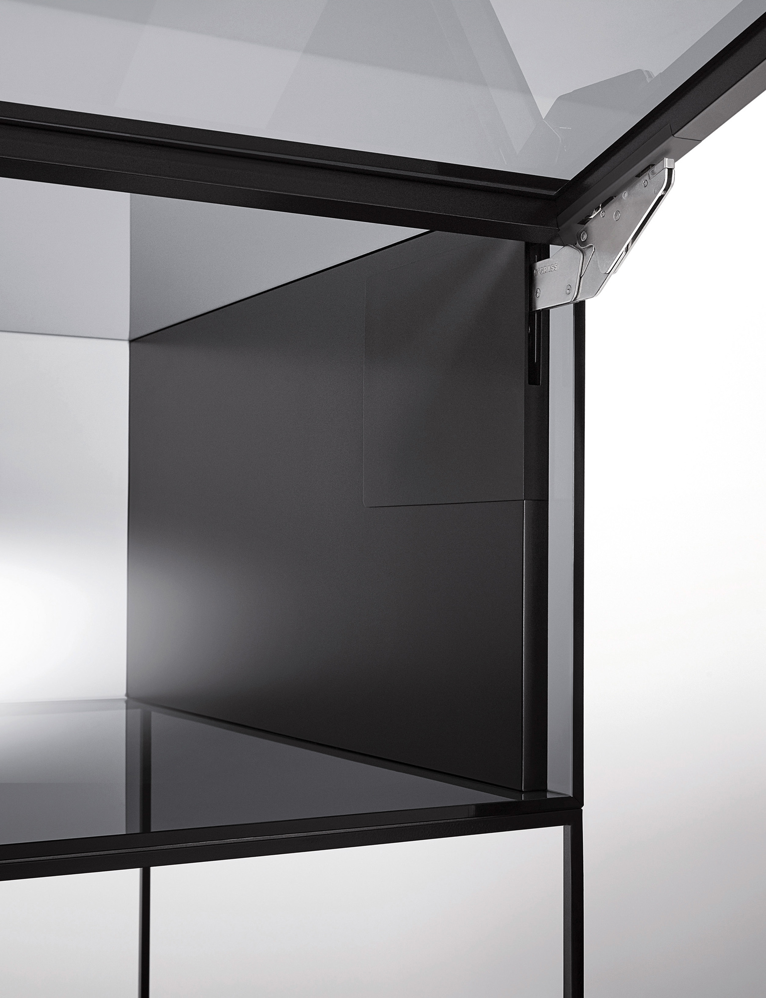 Elegant, modern-grifflos und alles im perfekten Farbverbund. Das Design ist klar und auf das Wesentliche reduziert – der dunkle Farbton strahlt Ruhe aus und setzt sich auch im Innern der Möbel konsequent und ohne Kompromiss bis ins kleinste Detail fort, wie die Innenausstattung zeigt. (Foto: AMK)