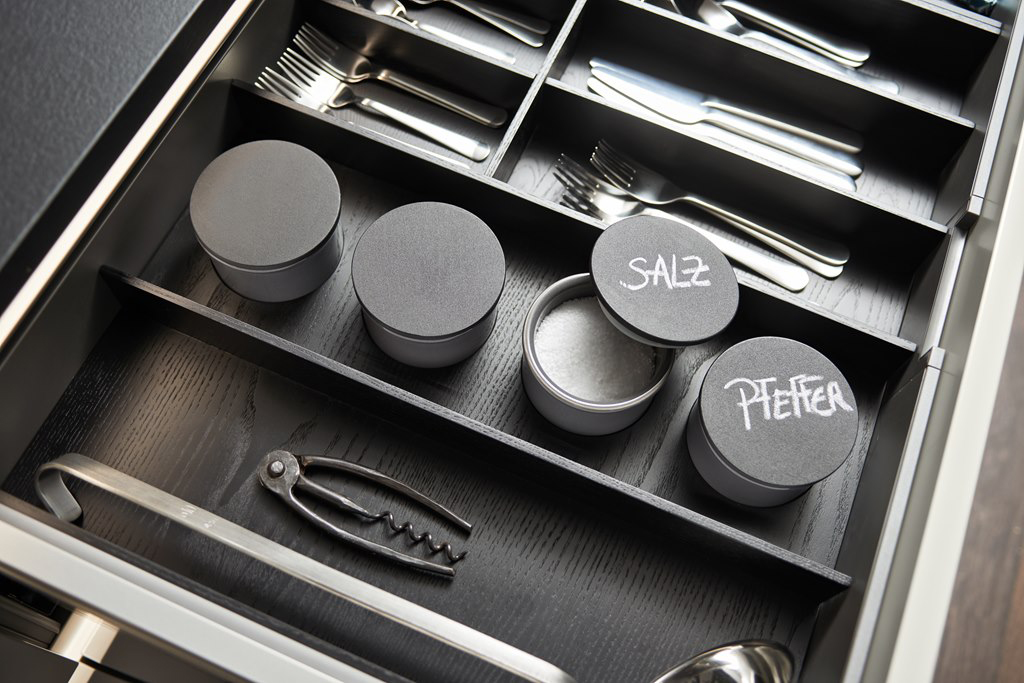 Die Innenausstattung von Schränken, Schubkästen und Auszügen in einer nach Wunsch und Maß geplanten Küche ist heute ebenso individuell wie ihr äußeres Erscheinungsbild. Fast möchte man sagen: Zeig mir deine Innenausstattung und ich sag dir, wer du bist. „So verschieden die Geschmäcker und Wünsche auch sind, die Ausstattungsoptionen sind mannigfaltig“, so Volker Irle.