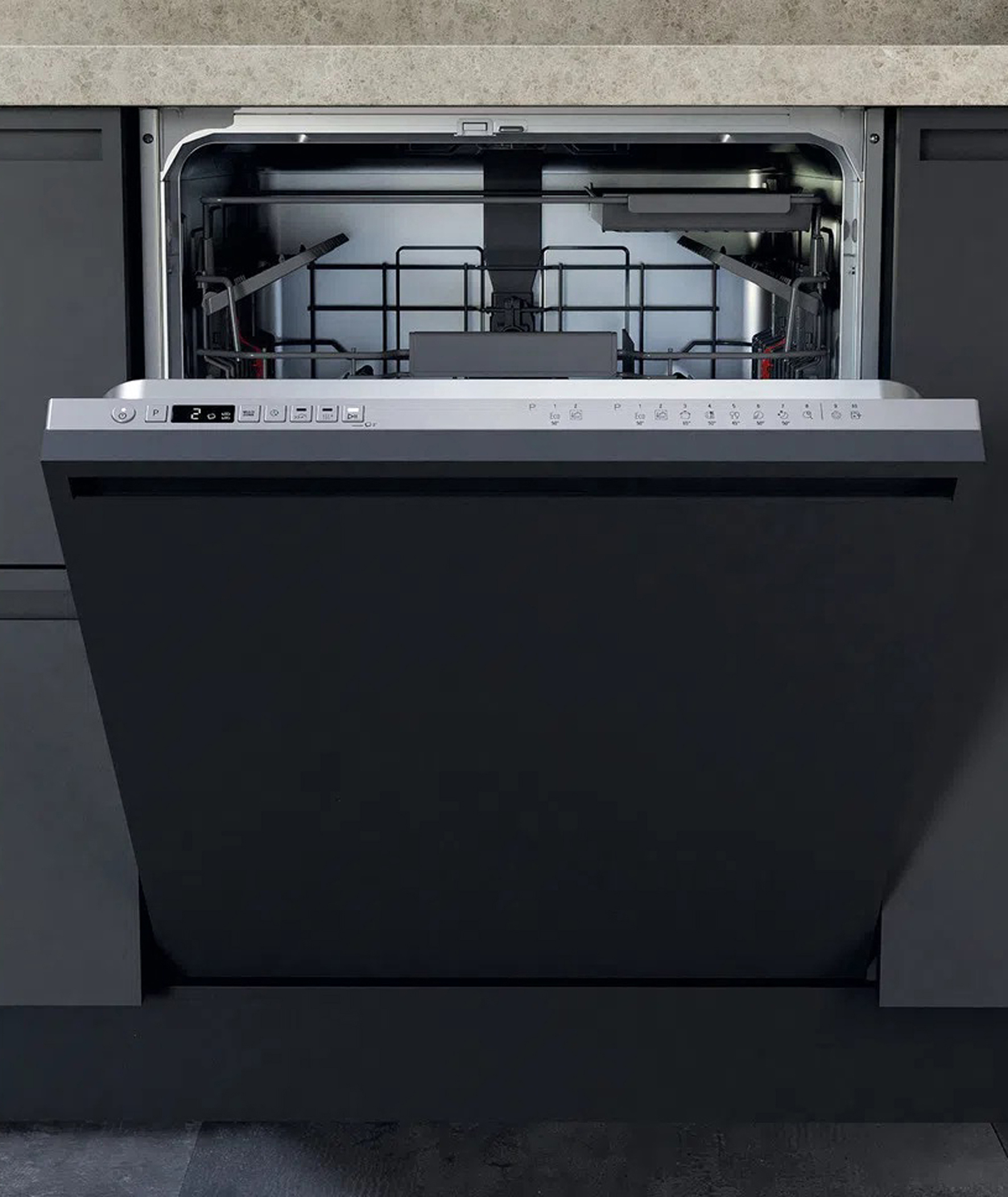 Dieses vollintegrierte Modell eignet sich z. B. auch für einen komfortablen und ergonomischen Hocheinbau. Es bietet u. a. ein Automatik-, Eco-, Selbstreinigungs-, Intensiv 70 °C- und ein 27-Minuten-Programm. (Foto: AMK)