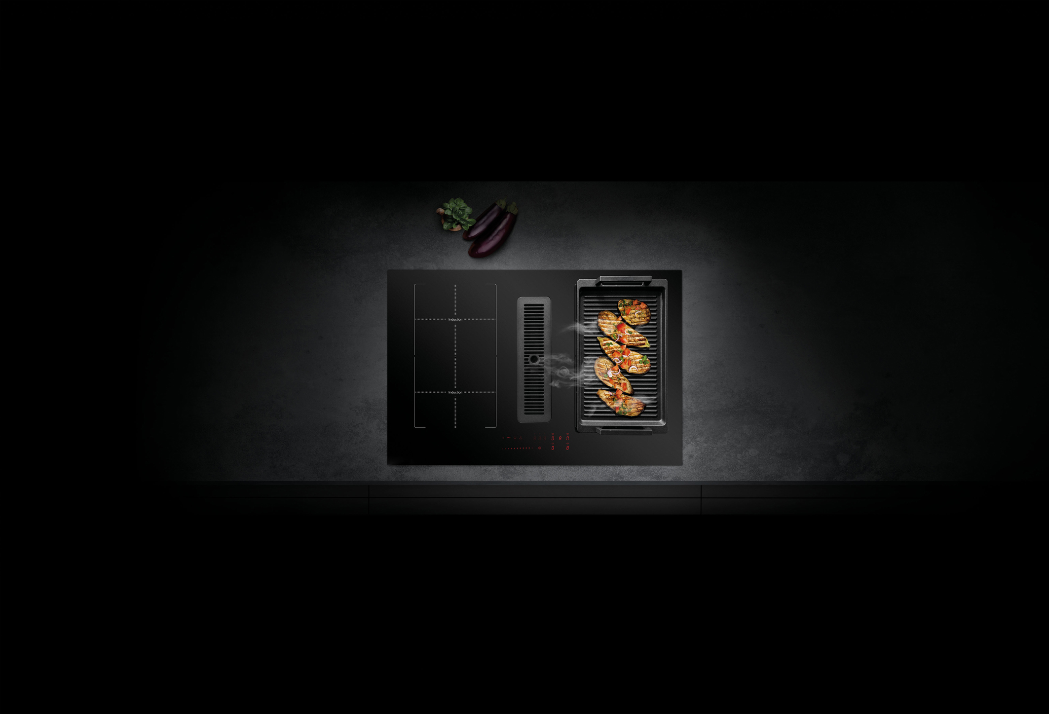Induktionskochfeld mit integriertem Dunstabzug – geeignet für eine Ab- und Umluftinstallation. Bei Inbetriebnahme schaltet sich das Lüftungssystem automatisch ein und saugt Kochschwaden, Fette und Gerüche effizient ab. (Foto: AMK)
