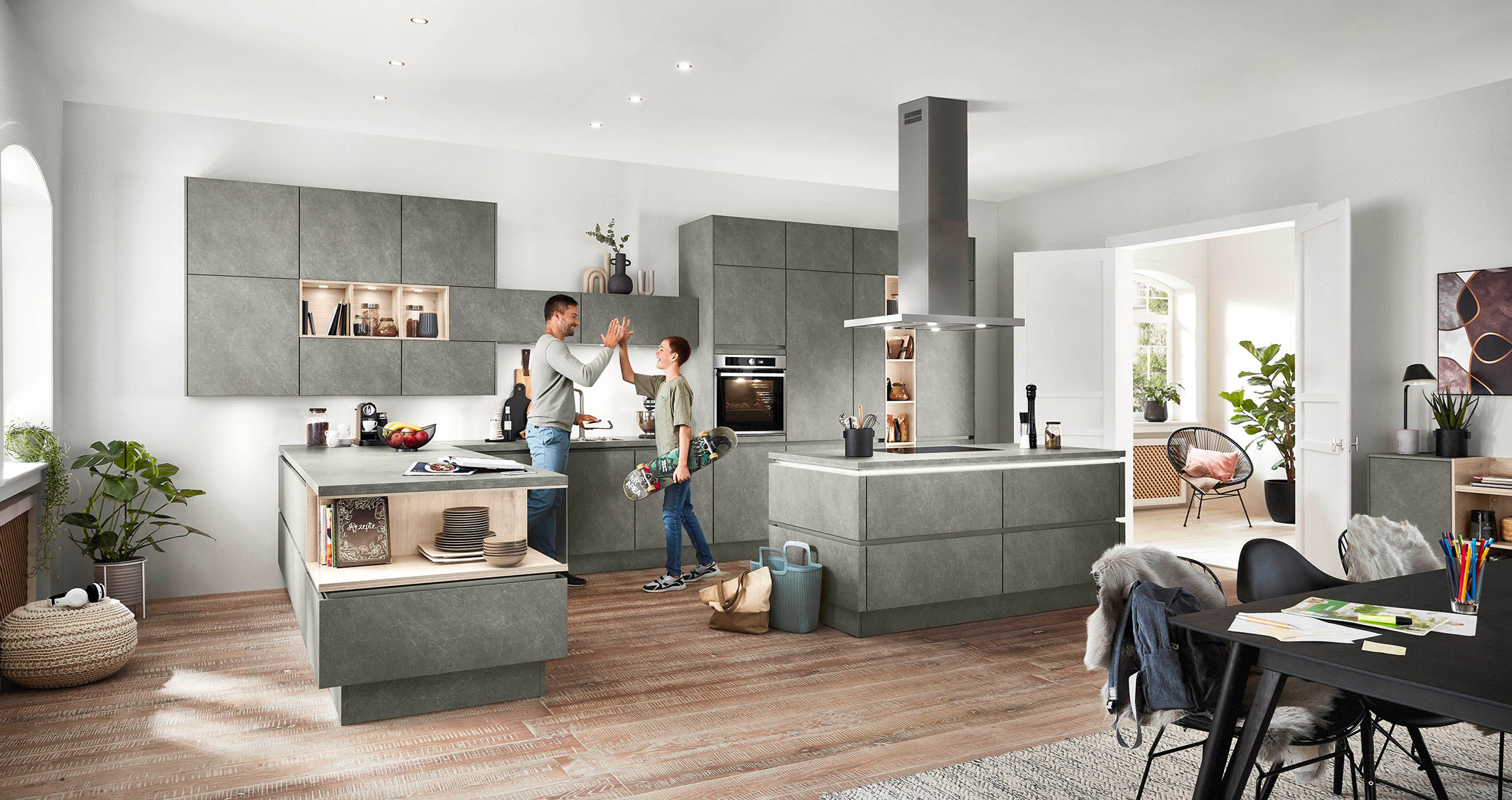 Da sind beispielsweise die neuen optimierten Antifingerprint-Oberflächen. Sie sorgen dafür, dass die tollen Lifestyle-Wohnküchen auch nach dem Kochen und Feiern top aussehen. Frei von unschönen Fingerabdrücken und dauerhaften Gebrauchsspuren – dank einer zudem verbesserten Kratzbeständigkeit. Darüber hinaus sind diese supermatten Oberflächen auch besonders leicht zu reinigen, wenn z. B. Fett und Lebensmittelrückstände darauf gelangen.