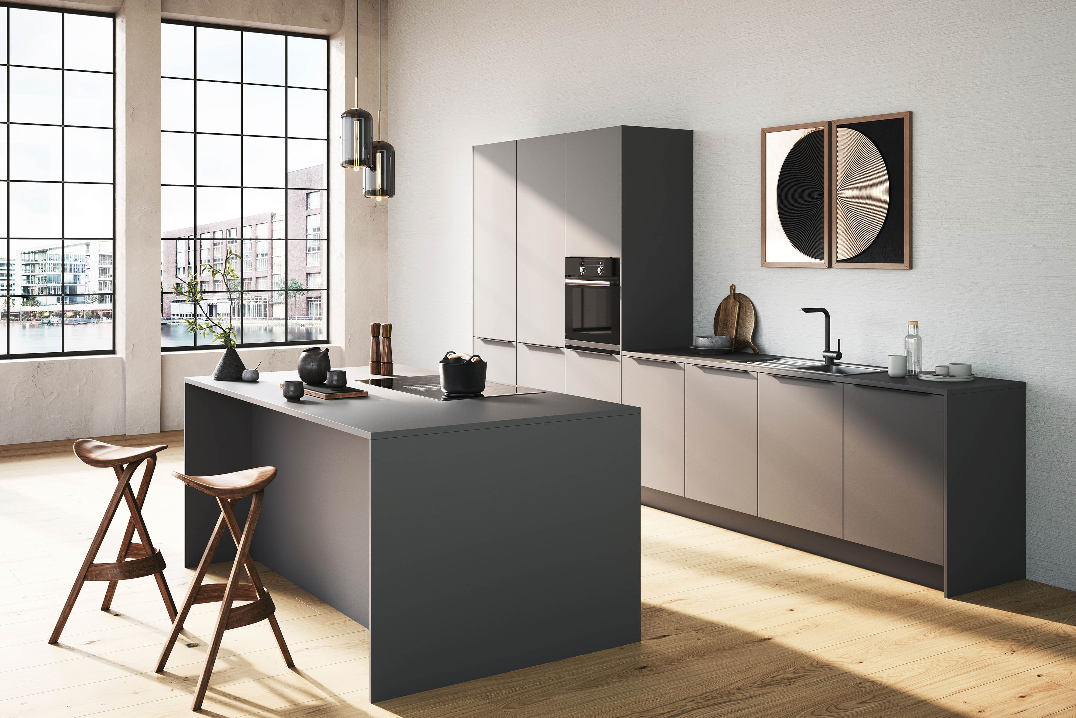 Mit matter, samtiger Haptik, robust, langlebig und ressourcenschonend. Eine Antifingerprint-Beschichtung verleiht dieser neuen Küche ein dauerhaft attraktives Äußeres. Ihre beständige Oberfläche bietet zudem einen hervorragenden Schutz gegen Hitze, Reinigungsmittel und Flecken.  (Foto: AMK)