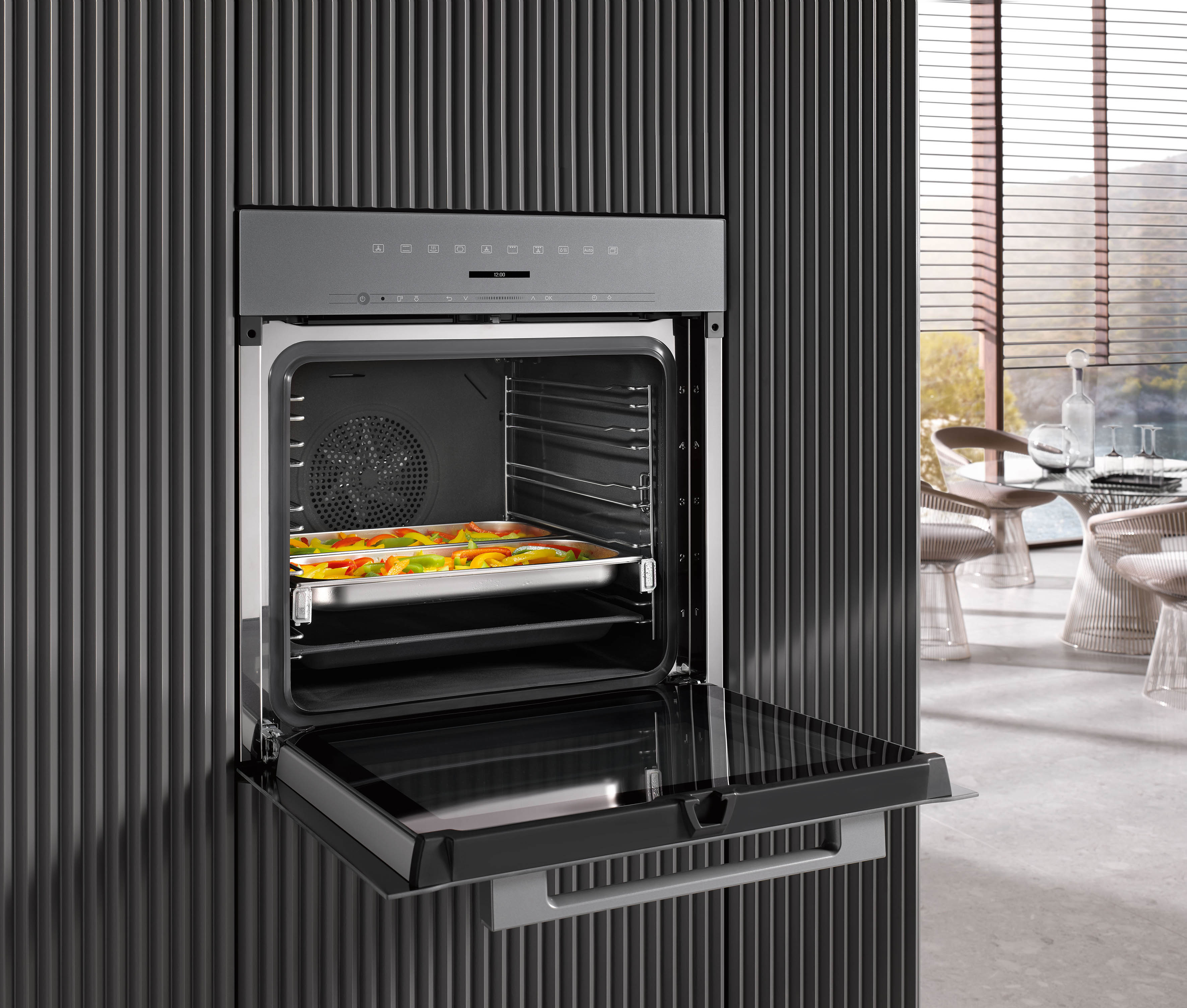 Zeit- und Energieersparnis sowie viel Flexibilität bei der Speisenzubereitung ermöglichen Einbau-Backöfen mit Dampfunterstützung und einem zusätzlichen Garraumteiler. Damit lässt sich der Innenraum in eine obere und untere Zone aufteilen, die unabhängig voneinander arbeiten. So kann für ein kleines Essen z. B. nur der obere Bereich genutzt werden. Oder beide Zonen gemeinsam, um beispielsweise oben ein zartes Fischfilet zuzubereiten, während im unteren Bereich die Beilagen gegart werden. Für köstlich saftige und knusprige Speisen lässt sich die Dampfmenge in verschiedenen Intensitätsstufen einstellen.