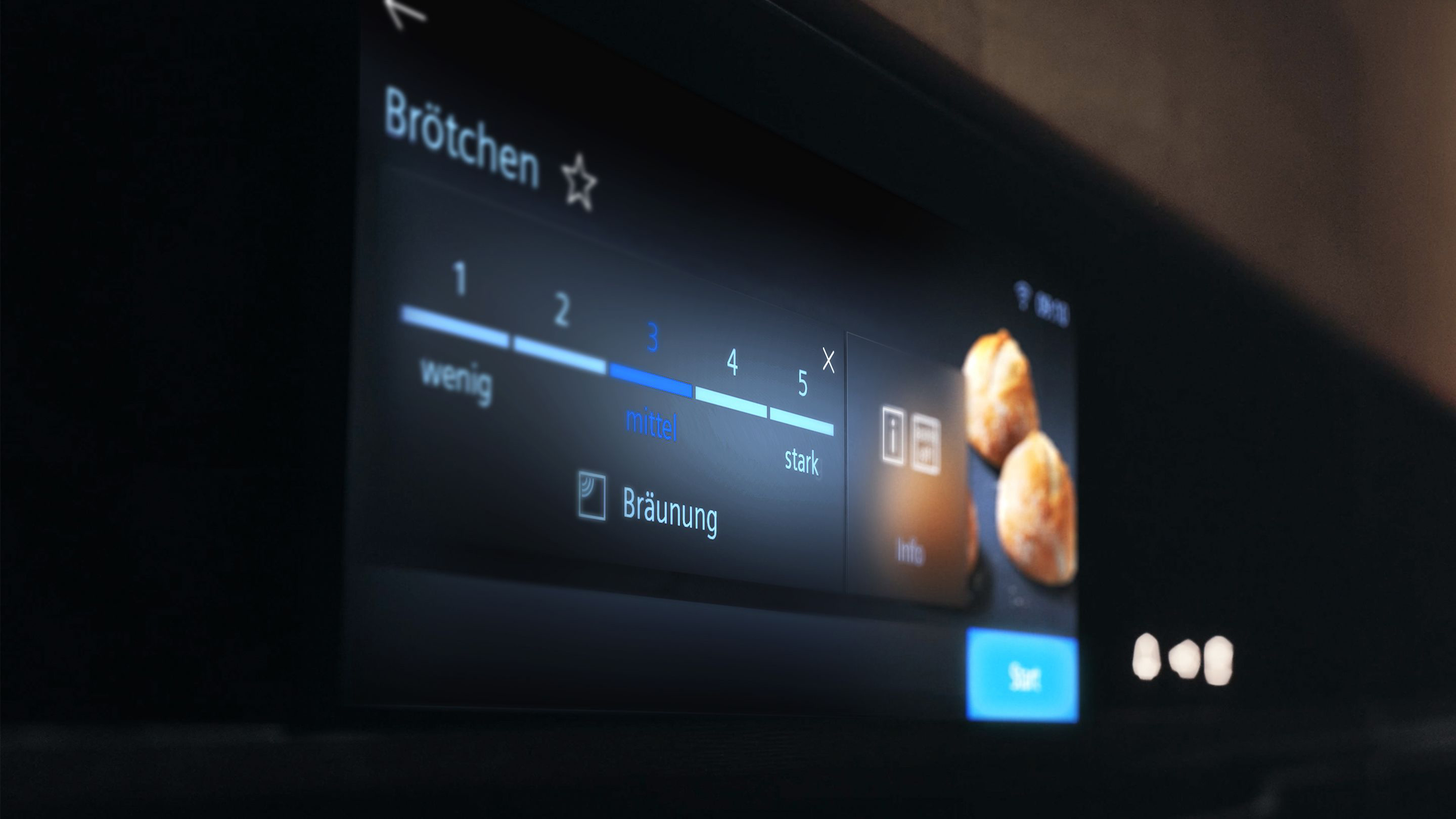 Per App kann unter anderem der Garprozess im Backofen überwacht werden. In die Decke des Garraums ist eine Kamera eingebaut, die Fotos des Garguts auf das Smartphone oder Tablet sendet. Wenn nötig, können die Einstellungen des Backofens über das mobile Endgerät angepasst werden. Bei speziellen Backöfen achtet ein Bräunungssensor darauf, dass Brötchen oder Lasagne nicht zu dunkel werden. Neuerdings verfügbar ist eine KI-gesteuerte Erkennung von Gerichten: Bestimmte Speisen werden per Künstlicher Intelligenz erkannt und die entsprechenden Programme für die Zubereitung vorgeschlagen. Zudem messen integrierte Sensoren den Feuchtigkeitsgehalt im Ofen und passen bei Bedarf die Temperatur an. Auch lässt sich das vernetzte Gerät jederzeit von unterwegs starten. Die App hält zudem eine Reihe von Rezeptvorschlägen bereit, deren Vorgaben zum Garprozess direkt an den Backofen übertragen werden können.Â