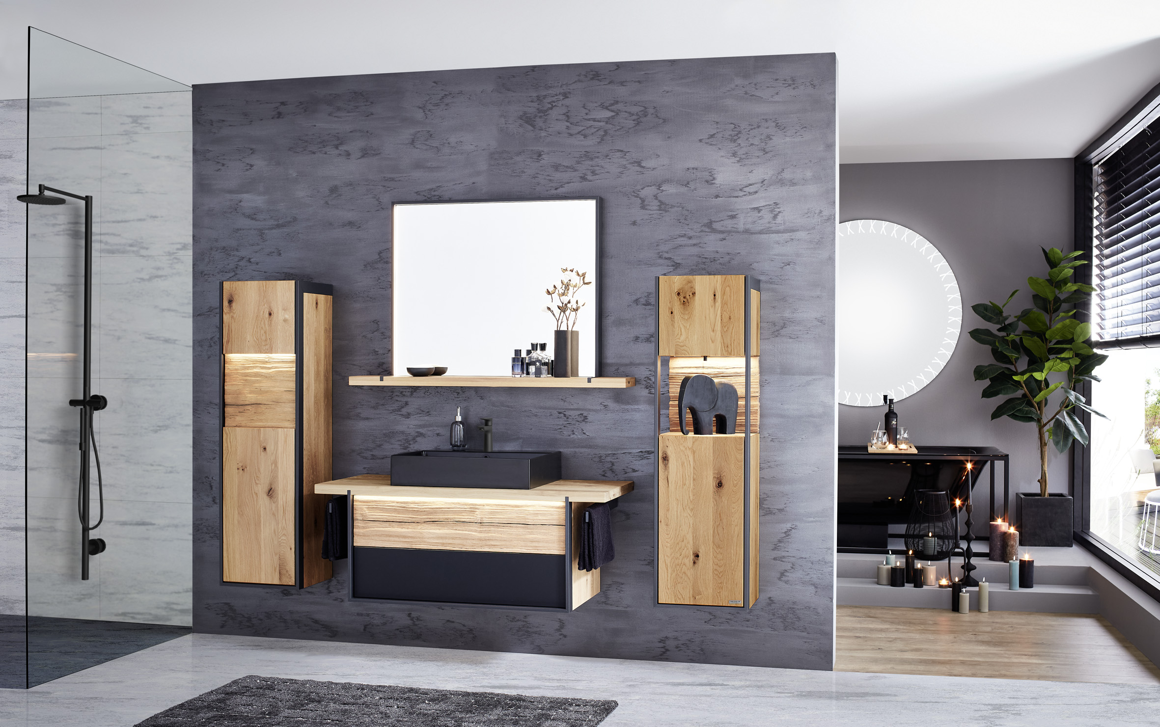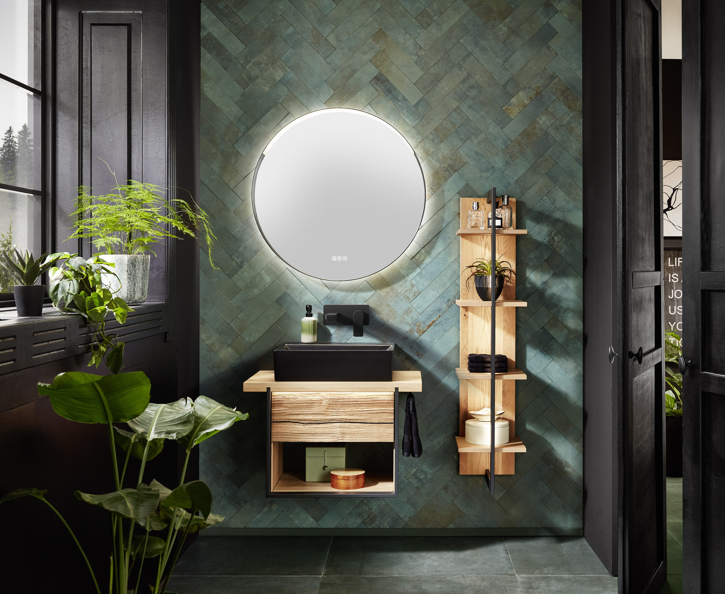 Bild 1: Massivholzmöbel im Badezimmer können gut mit Feuchtigkeit umgehen, da der Werkstoff hygroskopische Eigenschaften besitzt. Foto: IPM/Thielemeyer