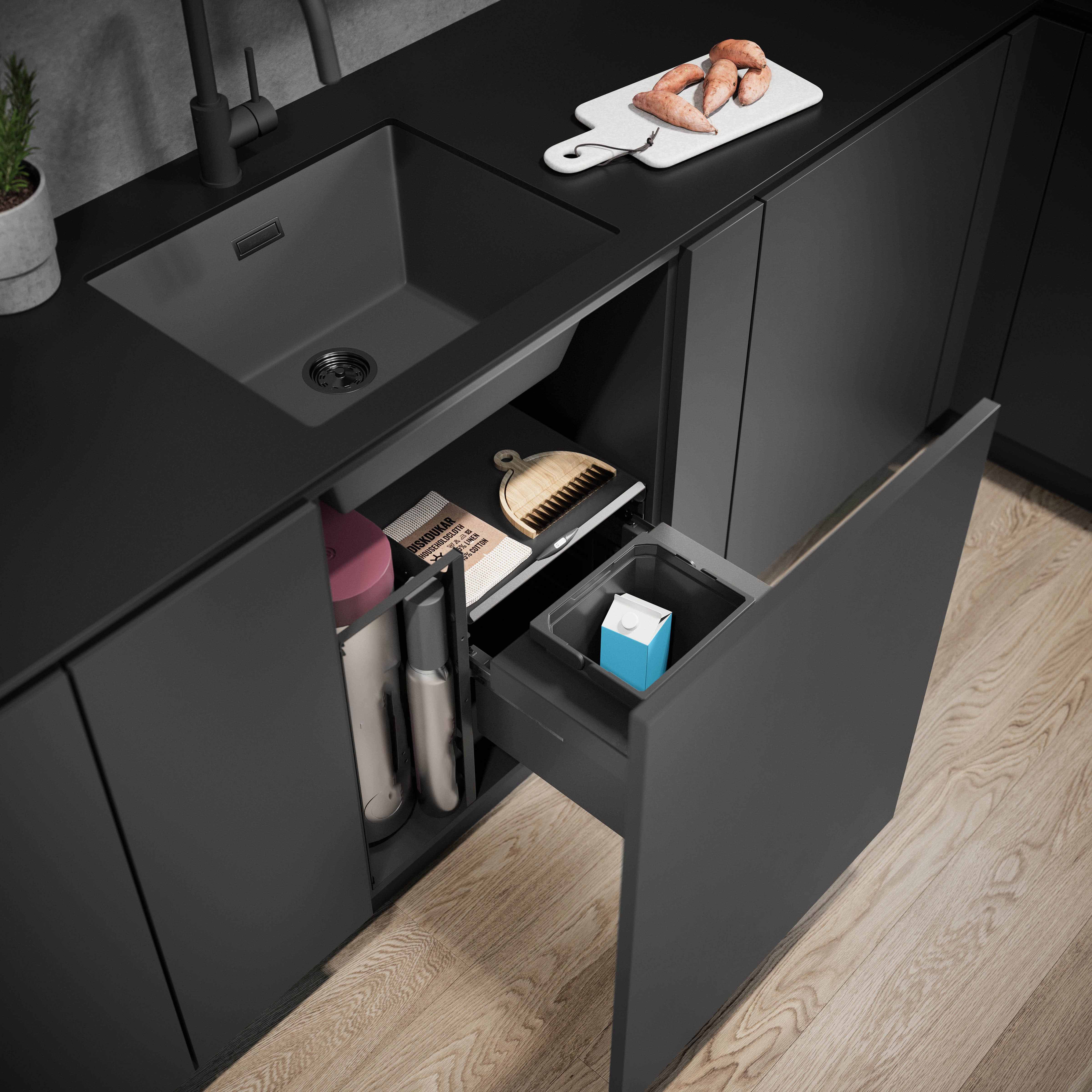 Hinzu kommt, dass die Abfalltrennsysteme von Generation zu Generation immer noch einen Tick attraktiver, hygienischer und nachhaltiger werden. Die Trendfarbe ist und bleibt Schwarz oder edles Anthrazit. Die formschönen Abfallsammelbehälter aus recyceltem Kunststoff sind zudem reinigungsfreundlich konzipiert und mit ihren unterschiedlichen Volumina sowie dem passenden Zubehör ist es ein Leichtes, sich von den Küchenspezialisten seiner Wahl die persönlich passende Konfiguration zusammenstellen zu lassen.