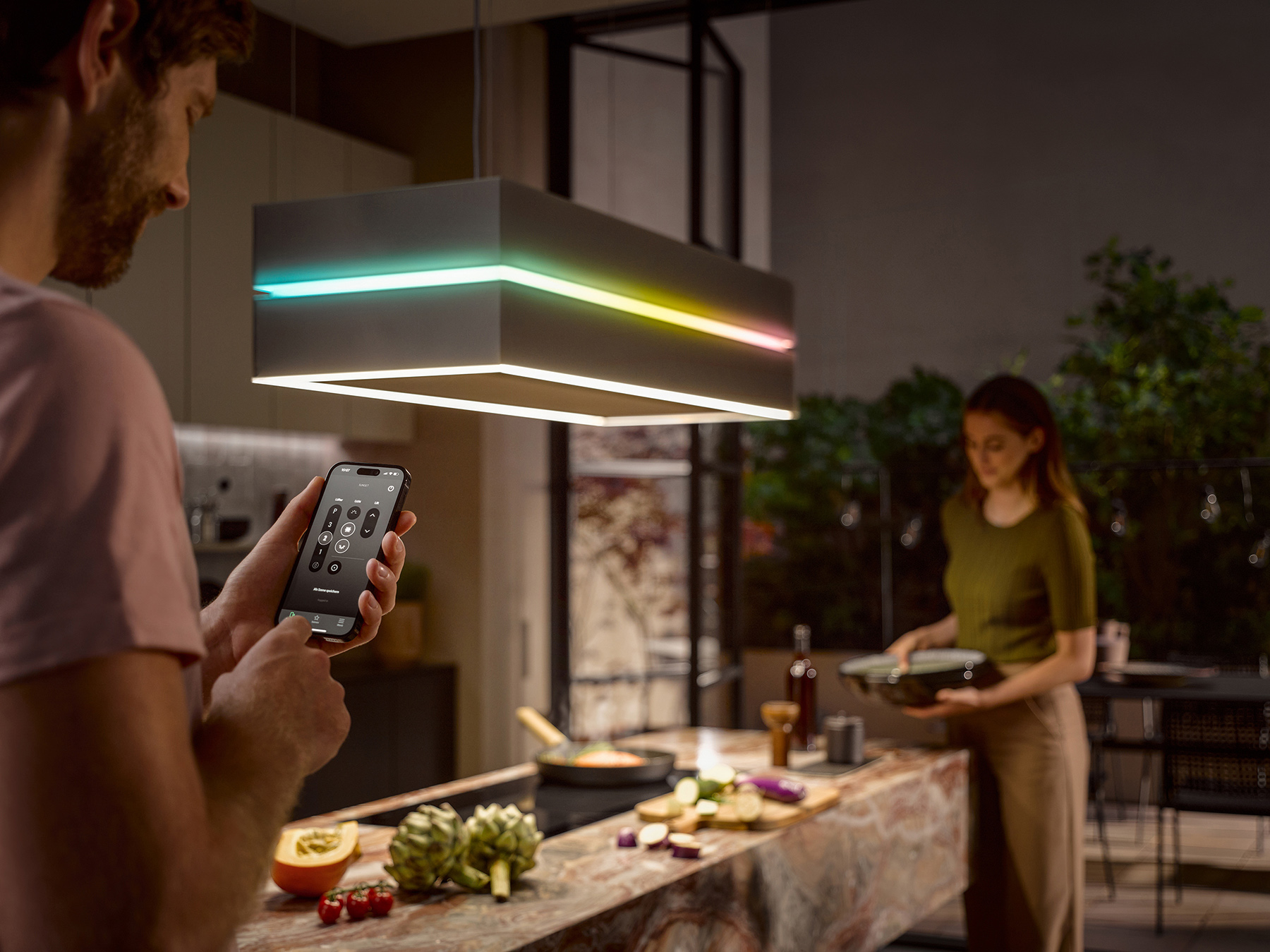 In manchen Haushalten soll es bei der Wahl eines neuen Dunstabzugs in erster Linie um Funktionalität, Effizienz und einen niedrigen Geräuschpegel gehen, doch zusätzliche Funktionen und neue innovative Features erhöhen den Komfort- und Spaß-Faktor ganz erheblich. So bringt beispielsweise eine Premium-Inselhaube mit Liftfunktion neben hoher Attraktivität und Performance weitere technische Finessen mit. Neben App- ist sie auch mit Gestensteuerung ausgestattet. Letzteres verhindert nicht nur unschöne Fingerabdrücke an ihrem Haubenkörper, die beim Hantieren mit feuchten oder von der Essenszubereitung verschmutzten Fingern entstehen würden. Auch die Lifteinstellung (absenkbare Höhe der Inselhaube über dem Kochfeld), die Kochfeldbeleuchtung und die Lüfterstufe lassen sich per Handbewegung anpassen. Lift- und Aktions-Sensoren machen es möglich. Eine weitere Besonderheit ist ihre Effektbeleuchtung. Damit lässt sich das Erscheinungsbild der Design-Inselhaube an die persönlichen Stimmungen oder das Ambiente der Küche anpassen. Hierfür stehen bis zu 12 Lichtsequenzen zur Wahl – von sanften FarbÂübergängen und beruhigenden Farbtönen bis zu dynamischen Lichteffekten.