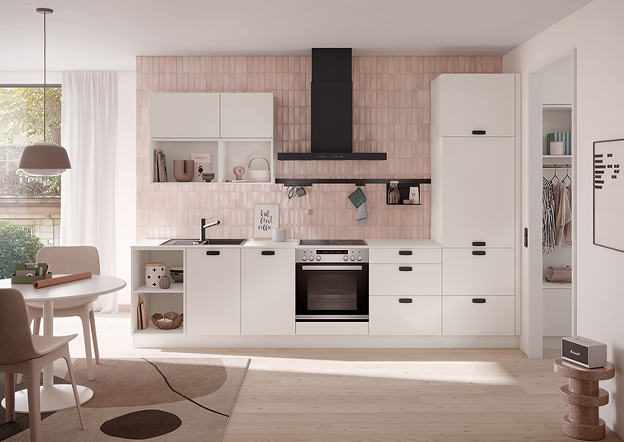 Gerade in kleinen Küchen muss der vorhandene Stauraum optimal genutzt werden. Neben der geringen Quadratmeterzahl kommen oftmals weitere Herausforderungen hinzu, wie etwas Dachschrägen oder besonders schmale Grundrisse. „Die Experten aus dem Küchenfachhandel unterstützen mit Ideen und Ratschlägen und finden auch für sehr kleine Küchen passgenaue Lösungen“, stellt Irle fest. Am Anfang steht das korrekte Aufmaß des Raums, dann folgt idealerweise die Planung der Strom- und Wasseranschlüsse. Grundsätzlich sind für Wände und Schrankfronten eher helle Farben zu empfehlen, da sie den Raum größer wirken lassen. Farbige Akzente lassen sich mit dekorativen Elementen setzen.