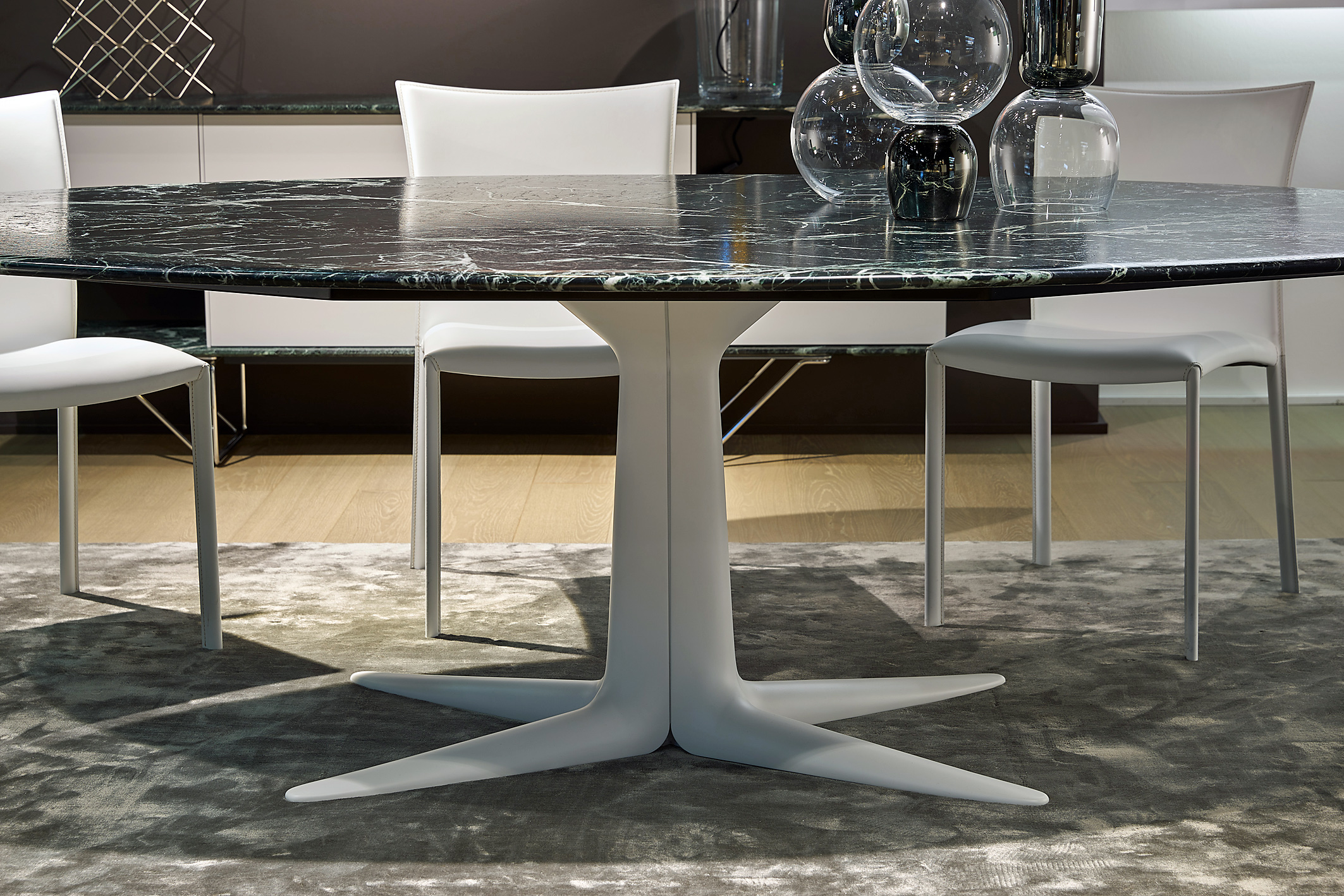 Eine VerĂ€nderung, die gleich mehrere Hersteller von Esszimmermöbeln, aber auch von Tischen fĂŒr andere Wohnbereiche jĂŒngst vorgenommen haben, sind schrĂ€ge Tischbeine meist aus Massivholz. SchrĂ€g bedeutet hierbei, dass der Innenwinkel zwischen Tischbein und Tischplatte mehr als 90 Grad betrĂ€gt. âEine solche Konstruktion nimmt â wenn ĂŒberhaupt â nur unwesentlich mehr StellflĂ€che in Anspruch, gewĂ€hrt dann aber spĂŒrbar mehr Beinfreiheitâ, weiĂ Möbelexperte Klaas. Weiteren positiven Einfluss auf den Sitzkomfort im Esszimmer haben die wieder in Mode kommenden Lounge-Sessel, die sich zum ergonomischen Esssessel weiterentwickelt haben. Sie schaffen GemĂŒtlichkeit und Sitzkomfort zu den Mahlzeiten, welche heute in vielen Haushalten die einzigen gemeinsam mit der Familie verbrachten Zeiten des Tages sind. Und wenn Besuch kommt, bleibt man nach dem Essen gerne bequem sitzen statt, wie frĂŒher ĂŒblich, auf die Couch zu wechseln. âDas Design der Esssessel lehnt sich stark an EntwĂŒrfe der 50er- und 60er-Jahre des vergangenen Jahrhunderts an. Wir finden dieses Mid-Century-Design gerade bei Möbeln fĂŒr das Wohn- und Esszimmer wieder sehr hĂ€ufig vorâ, so Klaas. Ein weiteres Beispiel dafĂŒr sind auch nierenförmige Beistelltische fĂŒr das Wohnzimmer, die hĂ€ufig ebenfalls auf drei bis vier schrĂ€gen Tischbeinen stehen. Bei kleinen und eher leichten Tischen tragen die schrĂ€gen Beine zu einer verbesserten Statik bei, so auch bei Tischen, an denen die Beine aus dem Zentrum der Tischplatte nach auĂen ragen.
