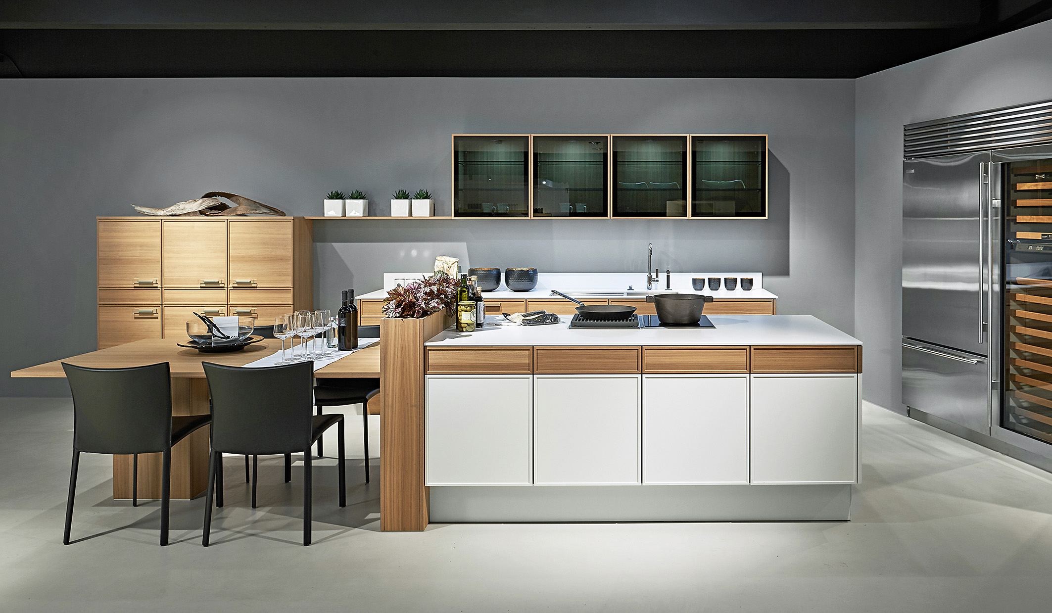 Mannheim, 09.06.2016. Eine moderne Küche muss allen Ansprüchen ihrer Besitzer in puncto Arbeitsoptimierung, Energieeffizienz und Ergonomie gerecht werden. Vor allem aber muss sie auch schön sein. Heute mehr denn je, denn immer mehr Menschen bevorzugen die offenen Wohnküche, die mit dem Ess- und Wohnbereich verbunden ist. „Die moderne Küche ist heute nicht mehr in einem kleinen Raum versteckt, sondern präsentiert sich im offenen Grundriss jedem Gast ganz unwillkürlich“, erläutert Kirk Mangels, Geschäftsführer der Arbeitsgemeinschaft Die Moderne Küche e.V. (AMK). „Zunehmend mehr Kunden entscheiden sich daher für eine individuelle Kombination verschiedener Materialien und damit für eine besondere Optik“. Der erste Eindruck zählt hierbei sowohl im Küchenstudio als auch später im eigenen Zuhause. Die Kombinationsfreude der Käufer deckt sich mit dem großen Angebot der Küchenhersteller.