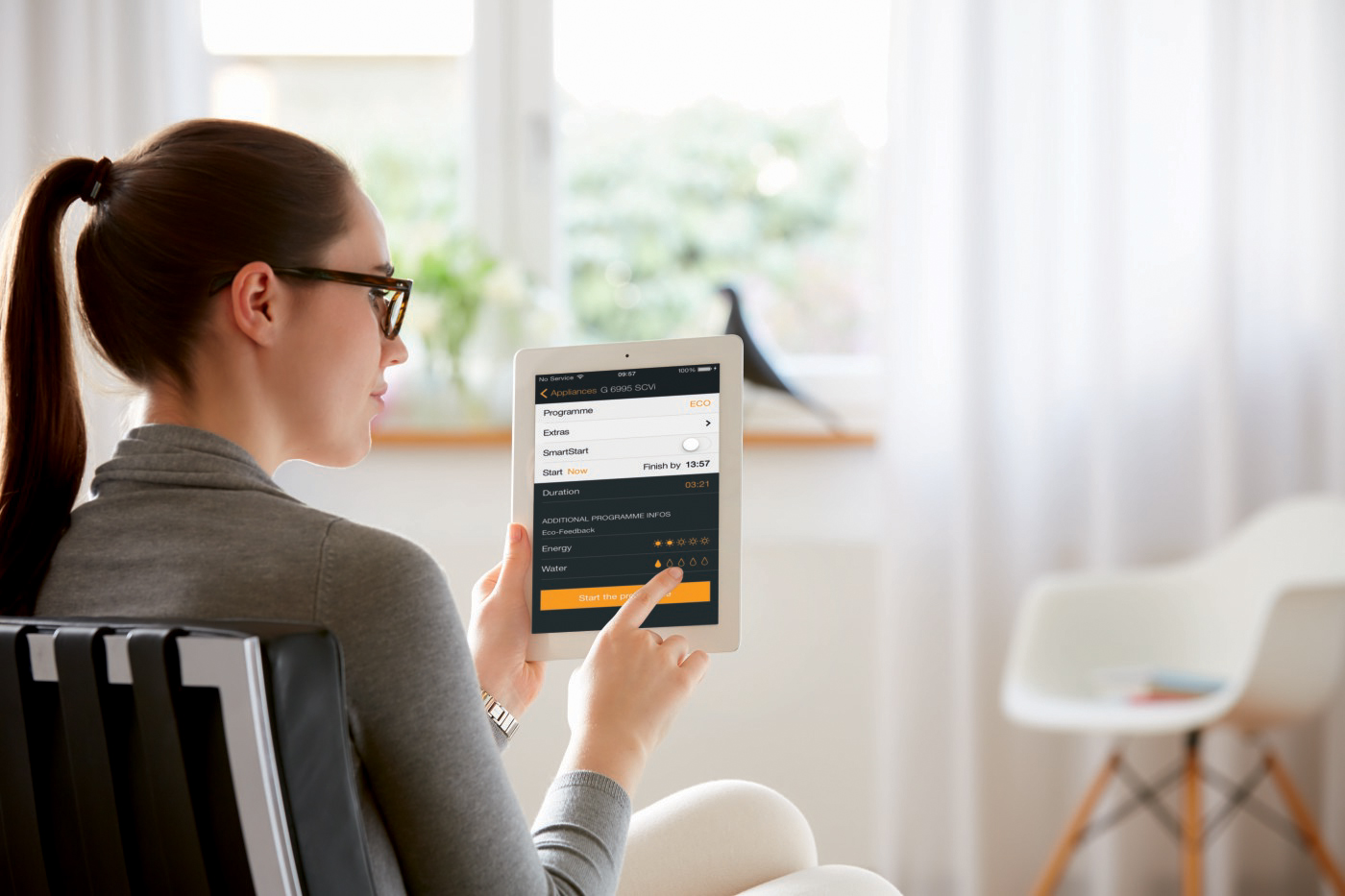 Was sich aktuell im eigenen smarten Kühlschrank mit integrierten Kameras befindet, zeigt ein Blick aufs Tablet, z. B. vom Supermarkt aus. Wann Geschirrspüler, Wäschetrockner und Waschmaschine fertig sind, muss man nicht mehr einzeln an den Geräten kontrollieren. Auf Wunsch bekommt man die Antwort in Form bequemer Push-Nachrichten (Notification Service) auf sein mobiles Endgerät. Beim Backen & Braten gilt: das passende Gericht aus einer Rezeptdatenbank per App auswählen und das Gargut in den intelligenten, sensorgesteuerten Backofen hineingeben. Die App sendet alle wichtigen Informationen – wie Heizart, Temperatur und Gardauer an den Backofen, so dass nur noch auf Start gedrückt werden muss. Anfang 2017 kommen die ersten vernetzten Hauben und Kochfelder hinzu, bei denen Komfort & Sicherheit an erster Stelle stehen. So müssen sich Anwender beispielsweise auf ihrem Weg in den Urlaub nicht mehr die bange Frage stellen, ob ihr Kochfeld wirklich ausgeschaltet ist, denn sie können den Gerätestatus ortsunabhängig per App überprüfen. Ein anderes Anwendungsszenario ist das mobile An- und Ausschalten der Dunstabzugshaube – bzw. wenn man bereits zu Hause ist, komfortabel vom Esstisch aus. Oder das Umstellen der Beleuchtung von Arbeits- auf Ambientelicht, ohne dass man dazu extra zur Haube gehen muss. Über die App kann man sich auch daran erinnern lassen, wann z.B. der nächste Filteraustausch ansteht – mit der Möglichkeit zur Online-Bestellung.