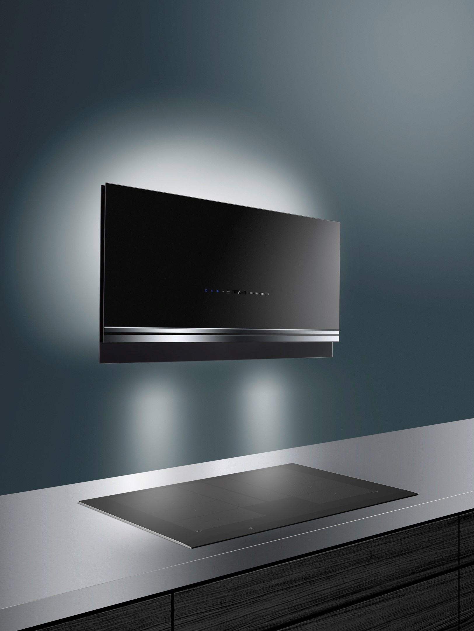 Sämtliche Funktionen der Design-Dunstesse (ab Januar 2017 erhältlich) sind auch per App möglich, z.B. sie mobil an- und auszuschalten – ebenso die Anzeige des Filterzustands. Zudem stimmt sie ihre Leistungsstufe automatisch auf die Garprozesse des Kochfelds ab. (Foto: AMK)