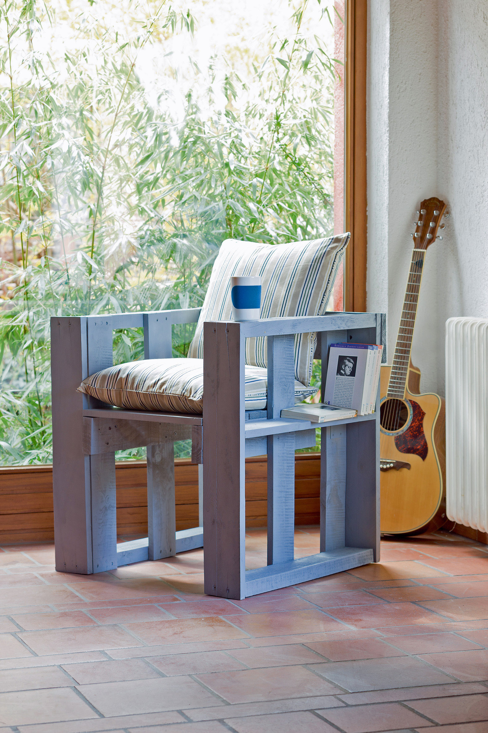 Foto 2: Gemütliche Sitzgelegenheit in zartem Blau. Foto: Claudia Guther/frechverlag