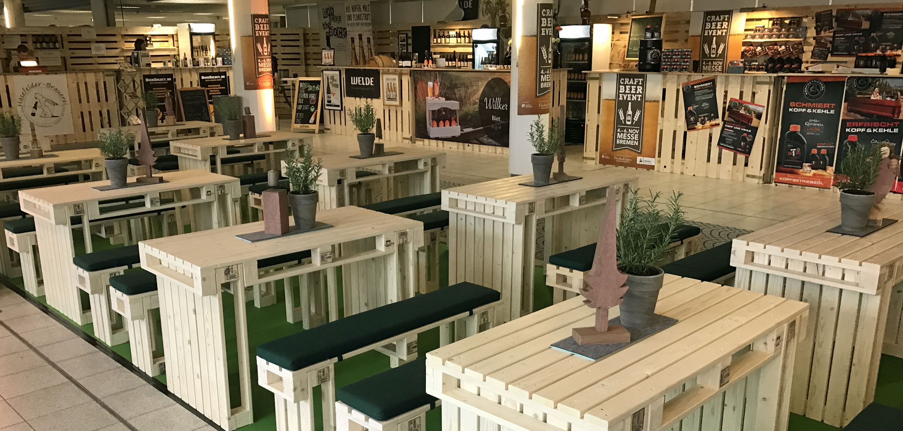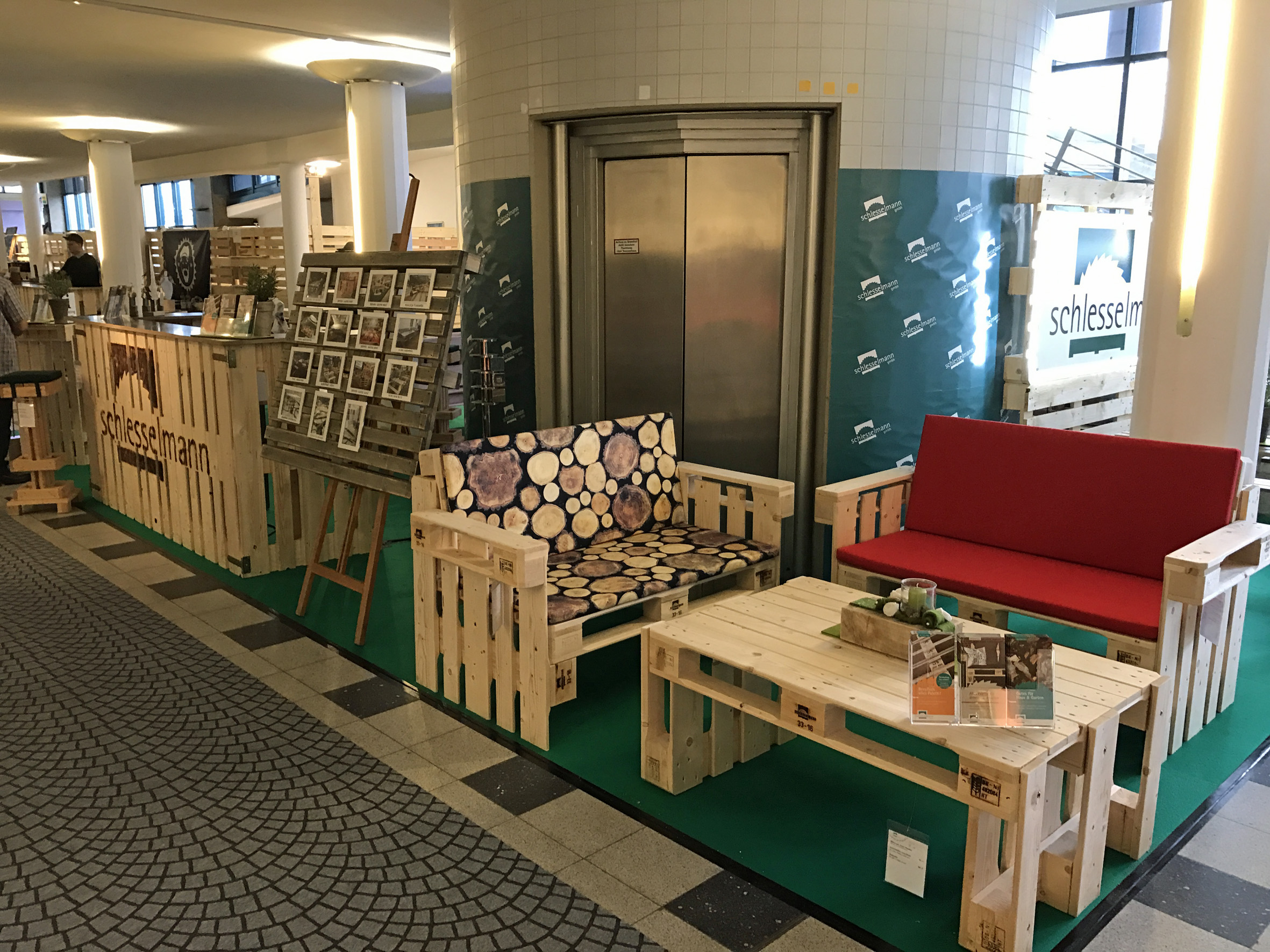 Foto 5: Palettenmöbel im Messeeinsatz. Foto: Schlesselmann GmbH