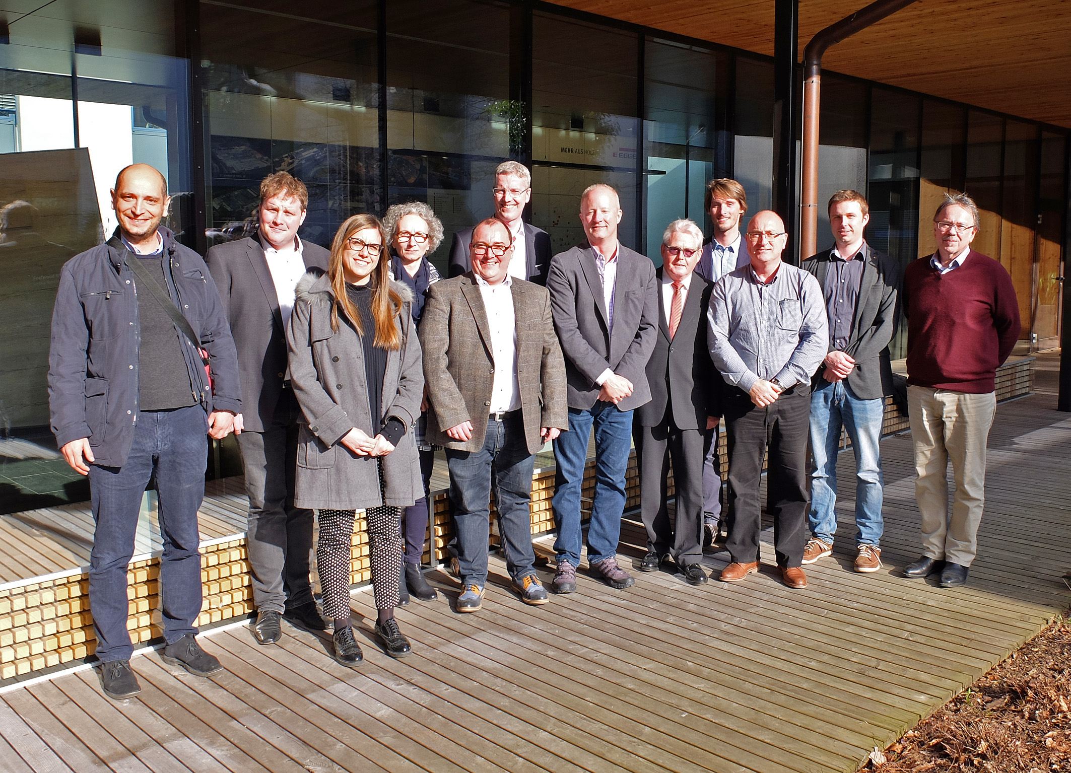 Bild 4: Teilnehmer der Firmenbesichtigung bei EGGER in Brilon v.l.n.r.: Omar Degoli (Federlegno Arredo), Thorsten Dietz (Head of Quality Management EGGER Brilon), Roberta Dessi (EFIC), Bettina Meyer (Fraunhofer Institut für Holzforschung), Marcus Kirschner (HDH/VDM), Philipp Sprockhoff (CEO Marketing and Sales, Head of Division EDP Central EGGER), Erik Winchester (US-Umweltbehörde), Karl-Detlef Kubitz (Plant Management Sales EGGER Brilon), Moritz Bühner (Product Sustainability Manager, Core Material Management/Product Sustainability Group FIRTZ EGGER), Piet Vanthournout (Fedustria), Alexander Krimbacher (Product Compliance Manager Core Material Management/Product Sustainability Group FRITZ EGGER), Ward Vervoort (CEI-Bois). Foto: HDH