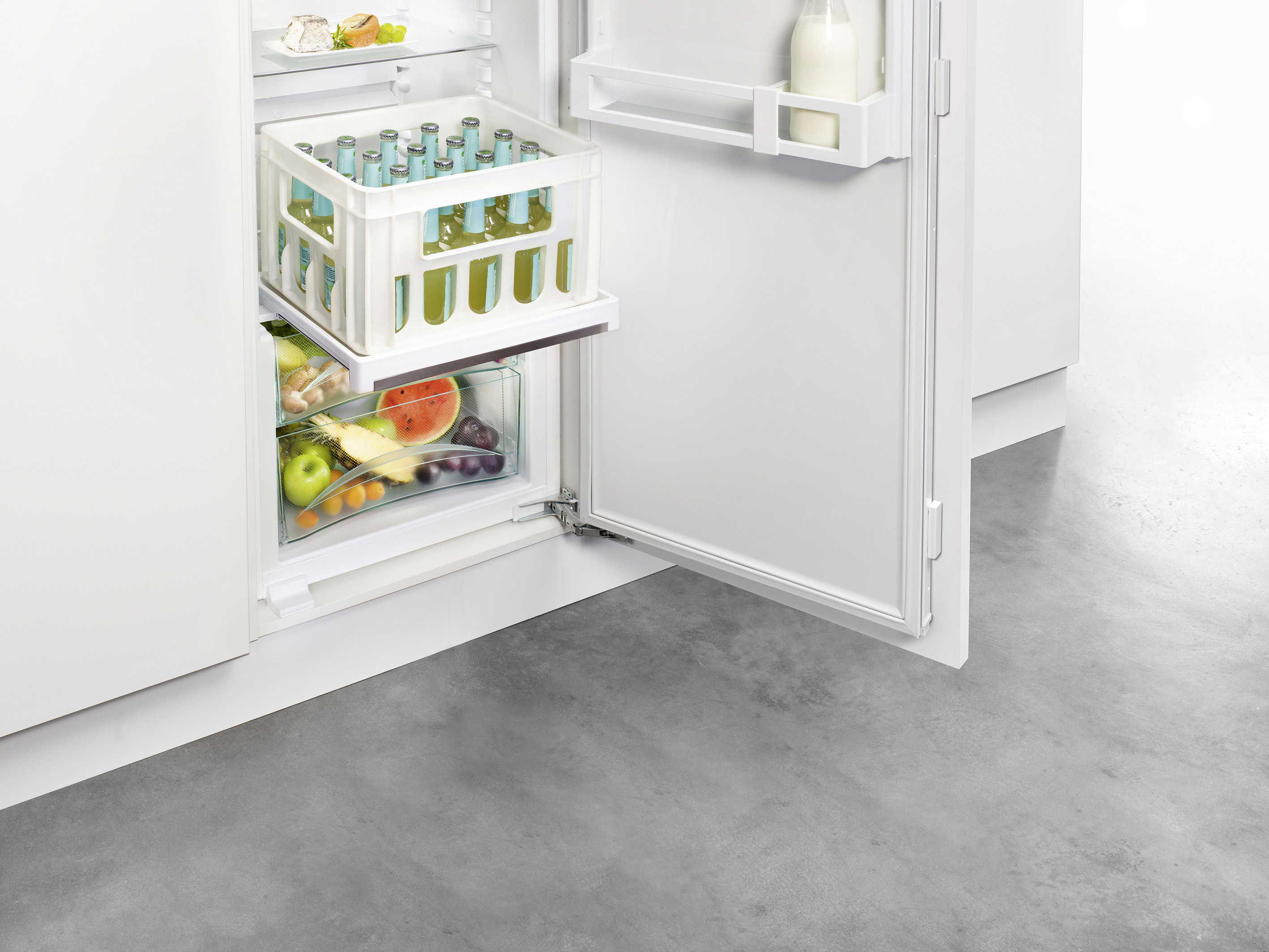 Entscheidend dafür ist das ideale Verhältnis von Feuchtigkeit und Kälte. Viele Obst- und Gemüsesorten, Salate und Kräuter bevorzugen eine Umgebung mit hoher Luftfeuchte und Temperaturen um die 0 °C. Zeitgemäße Einbau-Kühlschränke bieten entsprechende Schubladen mit der Möglichkeit zur individuellen Anpassung der Feuchtigkeit. Bei Geräten mit Premiumausstattung kommt noch eine spezielle Abdichtung der Boxen hinzu. Topmodelle ermöglichen zudem eine präzise Temperatureinstellung, z.B. zwischen -1 °C und +3 °C. Das hält Lebensmittel, wie Obst, Gemüse und Salat in einer feuchteregulierbaren Schublade, und Fisch, Fleisch, Geflügel, Käse und Wurstwaren – die dagegen eine trockene Umgebung nahe Null Grad Celsius bevorzugen und in eine Extraschublade kommen – bis zu dreimal länger frisch, verglichen mit einem Kühlschrank ohne verlängernde Frischetechnologie. Auch der Geschmack, die Aromen, Nährstoffe und Vitamine des Kühlguts werden bewahrt.
