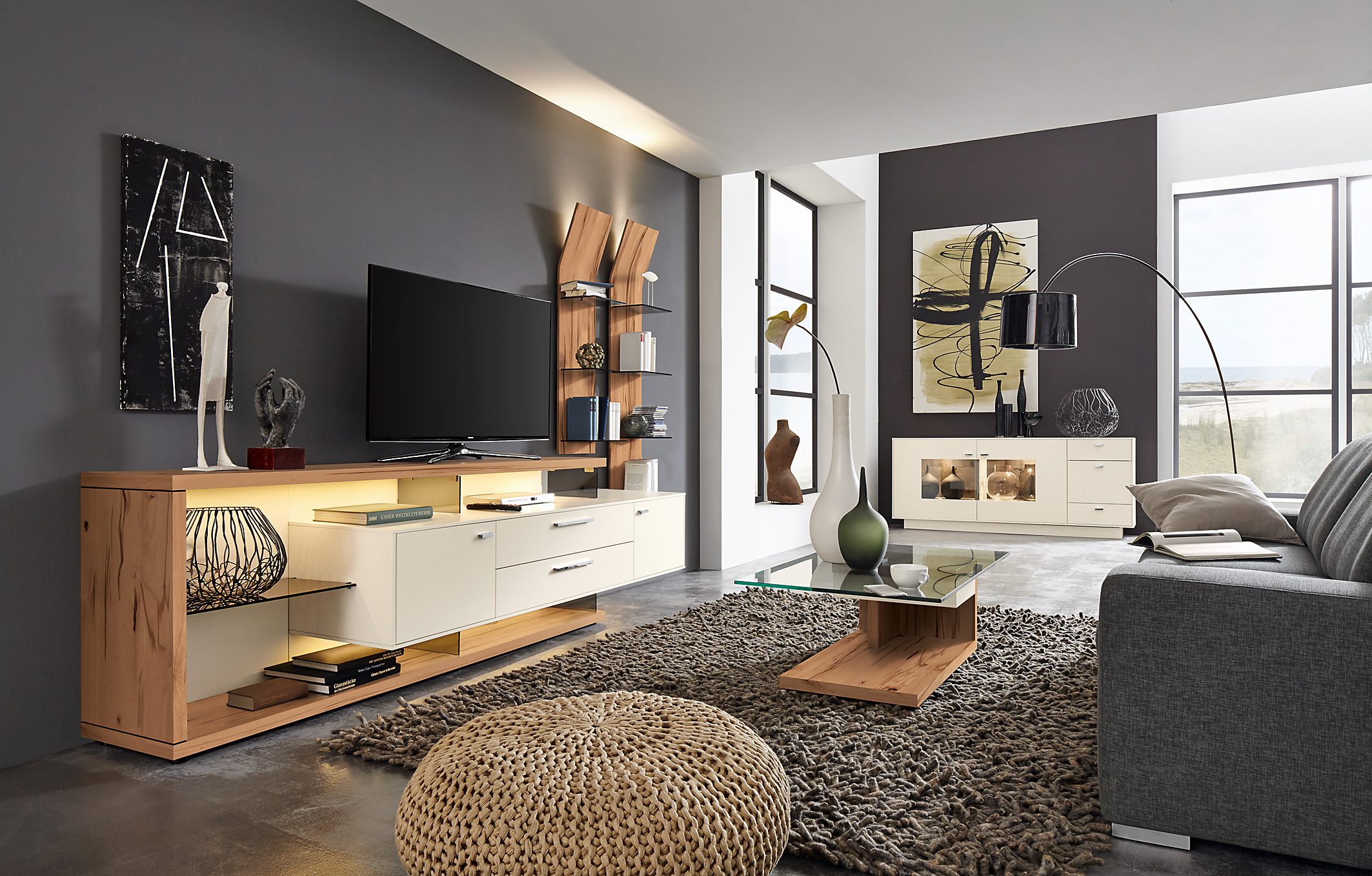 Das rĂ€umliche Umfeld und auch den Pflegekomfort beachten Ein weiteres entscheidendes Kriterium beim Möbelkauf ist die optische Wirkung des MöbelstĂŒcks auf sein rĂ€umliches Umfeld: WĂ€hrend ein groĂer dunkler Schrank ein Zimmer insgesamt kleiner wirken lĂ€sst, kann ein helles MöbelstĂŒck den gesamten Raum vergröĂern. Wo liegen hier die persönlichen PrĂ€ferenzen? Passen die Farbe und Form des Schranks zum Rest der Einrichtung sowie zur Wandfarbe oder Tapete? Immer öfter entscheiden sich Endverbraucher fĂŒr Möbel mit eingebauten Leuchtelementen. Diese können sowohl das MöbelstĂŒck gekonnt in Szene setzen und gleichzeitig zu einer angenehmen WohnatmosphĂ€re beitragen. Wer auf der Suche nach einer Wohnwand, einem Lowboard fĂŒr den Fernseher oder einem Schrank fĂŒr den Heimarbeitsplatz ist, wird auf Lösungen stoĂen, in denen nicht nur Leuchtelemente, sondern auch Elektro- und Multimedia-AnschlĂŒsse sowie KabelfĂŒhrungen integriert sein können. âDiese Lösungen tragen sowohl der zunehmenden Individualisierung als auch der Digitalisierung Rechnungâ, weiĂ Winning.