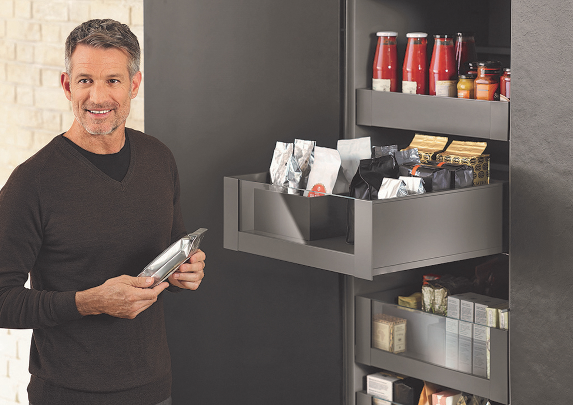 Für all jene, die auf eine Rundum-Ergonomie- und Komfortunterstützung in der Küche Wert legen, gibt es darüber hinaus auch noch intelligente mechanische Auszugssysteme sowie elektromotorische Liftsysteme für Hängeschränke. Elegante, hochfunktionale Bewegungsabläufe gehen mit Design und Bedienkomfort hierbei eine ideale Verbindung ein, denn auf sanften Zug hin oder per Knopfdruck kommt der Schrankinhalt seinen Nutzern auf Tablaren schön übersichtlich entgegen.