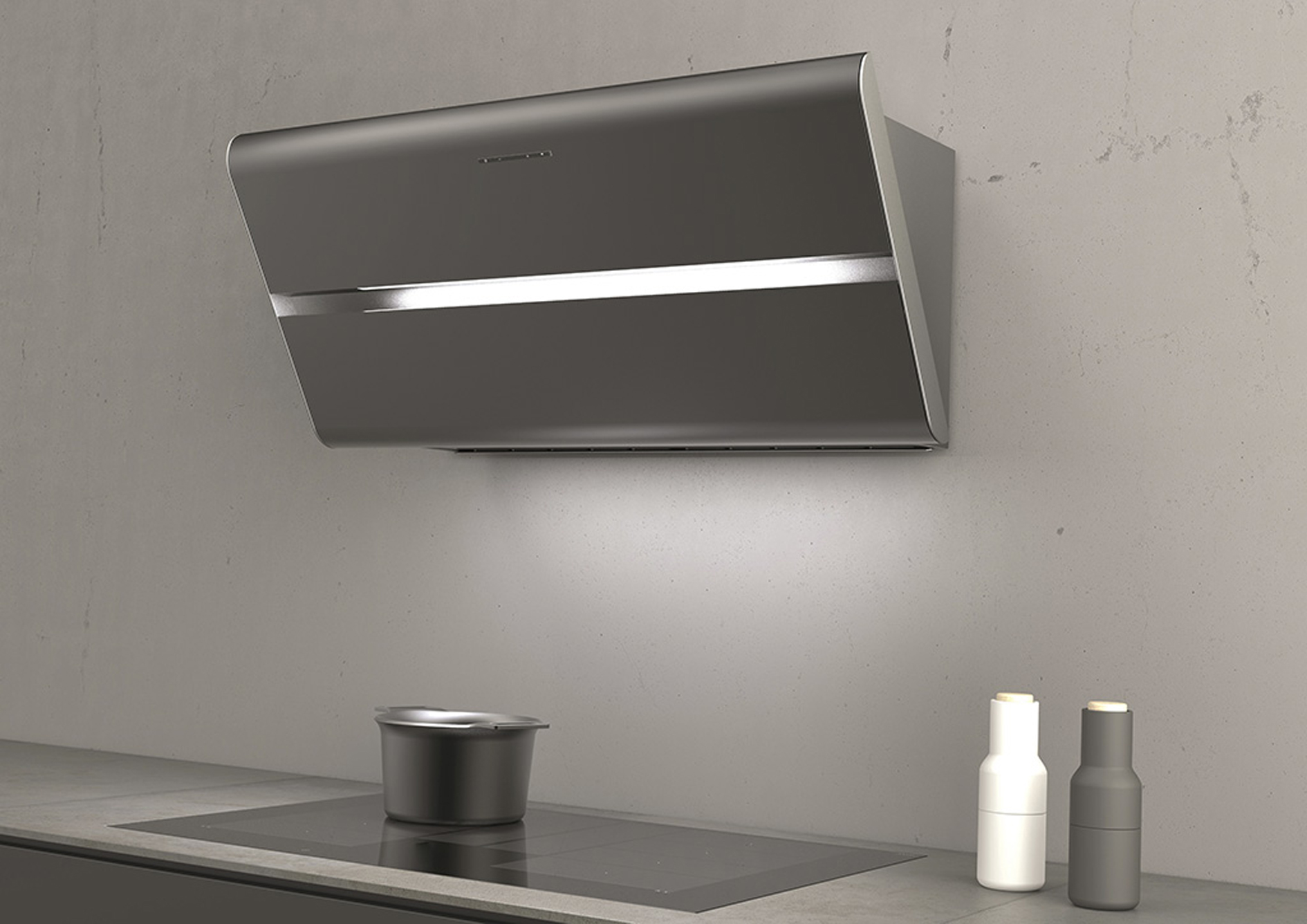 Foto 3: Diese elegante Wandschräghaube sorgt für reichlich Kopf- und Bewegungsfreiheit am Kochfeld. (Foto: AMK)