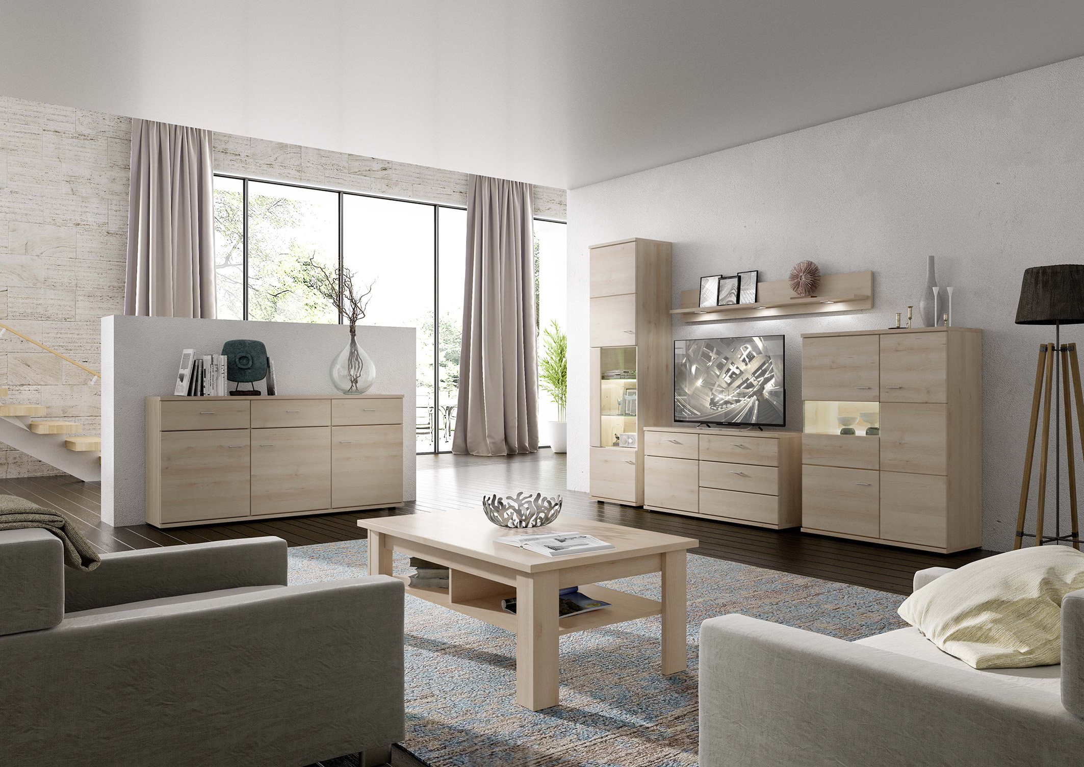 Das Kerngeschäft der Stralsunder Möbelwerke bilden Korpusmöbel wie Side-, High- und Lowboards und dazu passende Regale. Sie werden in individueller Ausführung und Optik in Akazie, Wildeiche & Co. vom Endverbraucher für dessen Wohn- oder Speisezimmer gestaltet. Variable Zusatzausstattung wie Griffe, LED-Beleuchtung und Rückwandspiegel setzen die Möbel gekonnt in Szene. In diesem Jahr möchte das Unternehmen vor allem die eigene Tischproduktion weiter ausbauen.