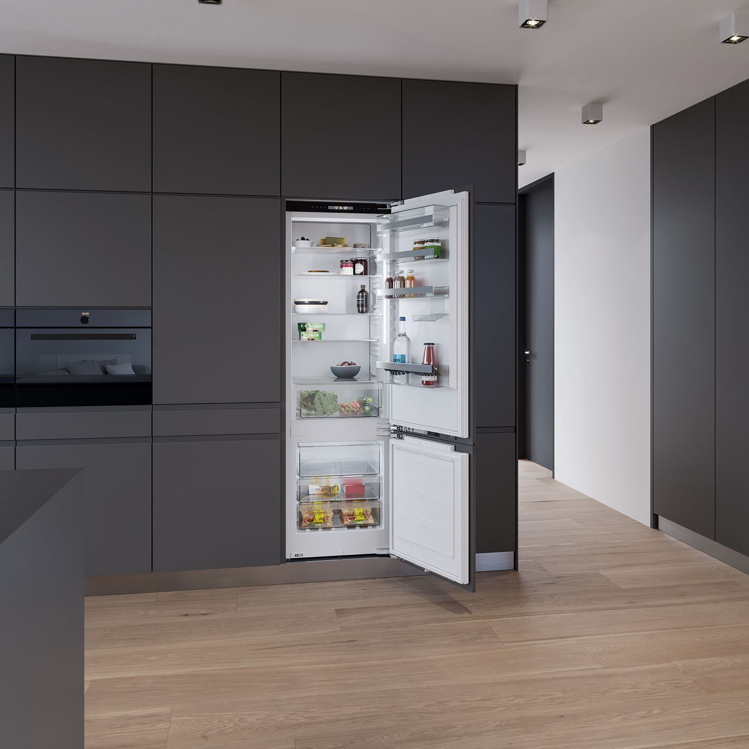 Doch der ressourcenschonende Umgang mit Energie ist nur eines von vielen Komfortmerkmalen, mit denen neue Einbau- und Standmodelle zum Kühlen, Gefrieren und Weinlagern heute ihre Besitzer begeistern. Neben NoFrost-Technik – nie mehr von Hand auftauen müssen – ist das vor allem eine deutlich verlängerte Lebensmittelfrische. Das gilt auch für heikle Produkte wie Meeresfrüchte oder empfindliches Obst und Kräuter. Innovative Frischeschubladen mit idealen Temperaturen und Lagerbedingungen für Fisch und Fleisch sowie Obst, Salat und Gemüse machen so etwas möglich. Gleichzeitig unterstützt so ein modernes, zeitgemäßes Frischemanagement dabei, die vermeidbare hohe Lebensmittelverschwendung einzudämmen.