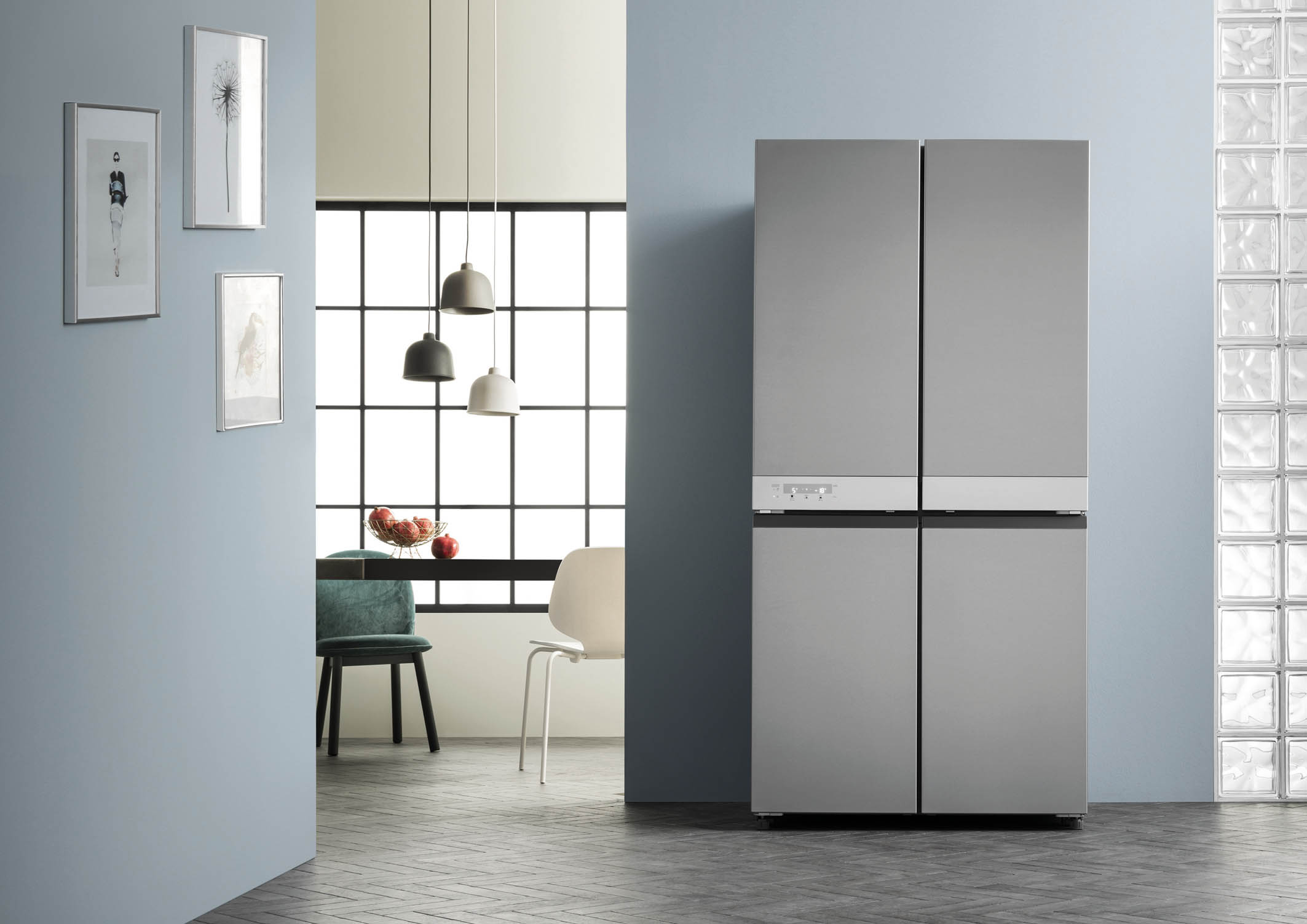 „Neben bester Energieeffizienz und einer deutlich längeren Frische der Lebensmittel spielen in den neuen Lifestyle-Wohnküchen auch das Design und die Geräuschemission eine wichtige Rolle“, sagt Volker Irle. Schön und leise sind sie – die neuen Kühlgefrierkombinationen und Multidoors. Dabei erfreuen sich insbesondere großvolumige Einbaugeräte oder Solitäre mit mehreren hundert Litern Nutzinhalt großer Beliebtheit. Das kann z. B. eine doppeltürige Kühlgefrierkombination mit zwei ausziehbaren Gefrierschubladen im sogenannten Frenchdoor-Design sein oder eine stylishe Side-by-Side-Kombination nach amerikanischem Vorbild mit zwei oder vier Türen – dann Multidoor genannt. In so einen XXL-Viertürer passt ein ganzer Wocheneinkauf hinein. Für zusätzlichen Komfort im Alltag sorgt beispielsweise ein flexibel nutzbarer Bereich, der je nach Bedarf einfach von Gefrieren auf Kühlen umgestellt werden kann: Erwartet man in ein paar Stunden Gäste, kommt der Getränkevorrat in diese flexible Zone und wird dort auf Wunschtemperatur heruntergekühlt. Nach der Party oder dem nächsten Einkauf kann wieder einfach von Cooling auf Freezing umgestellt werden.