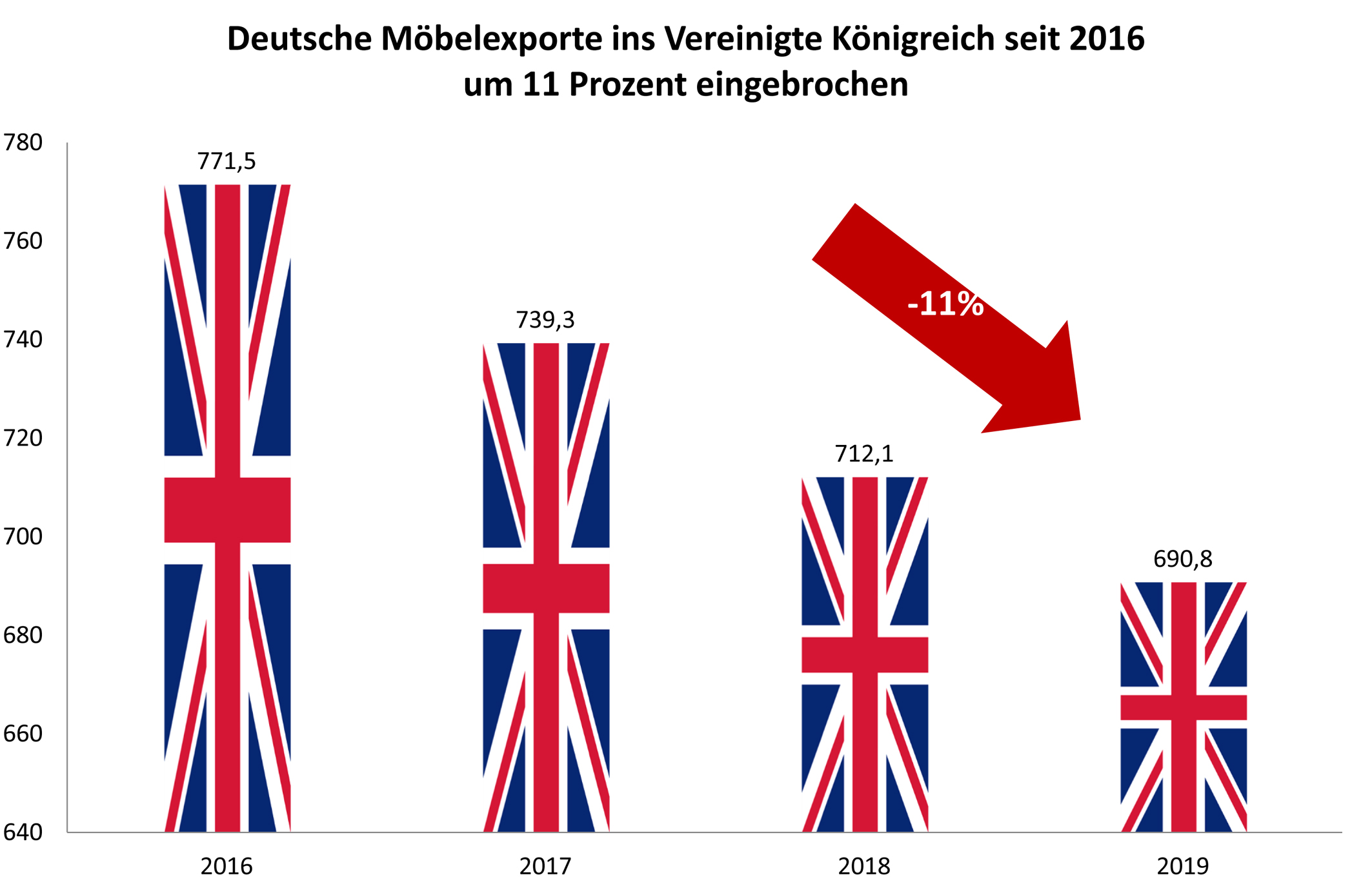Bild: Deutsche Möbelexporte nach UK seit 2016. Grafik: VDM