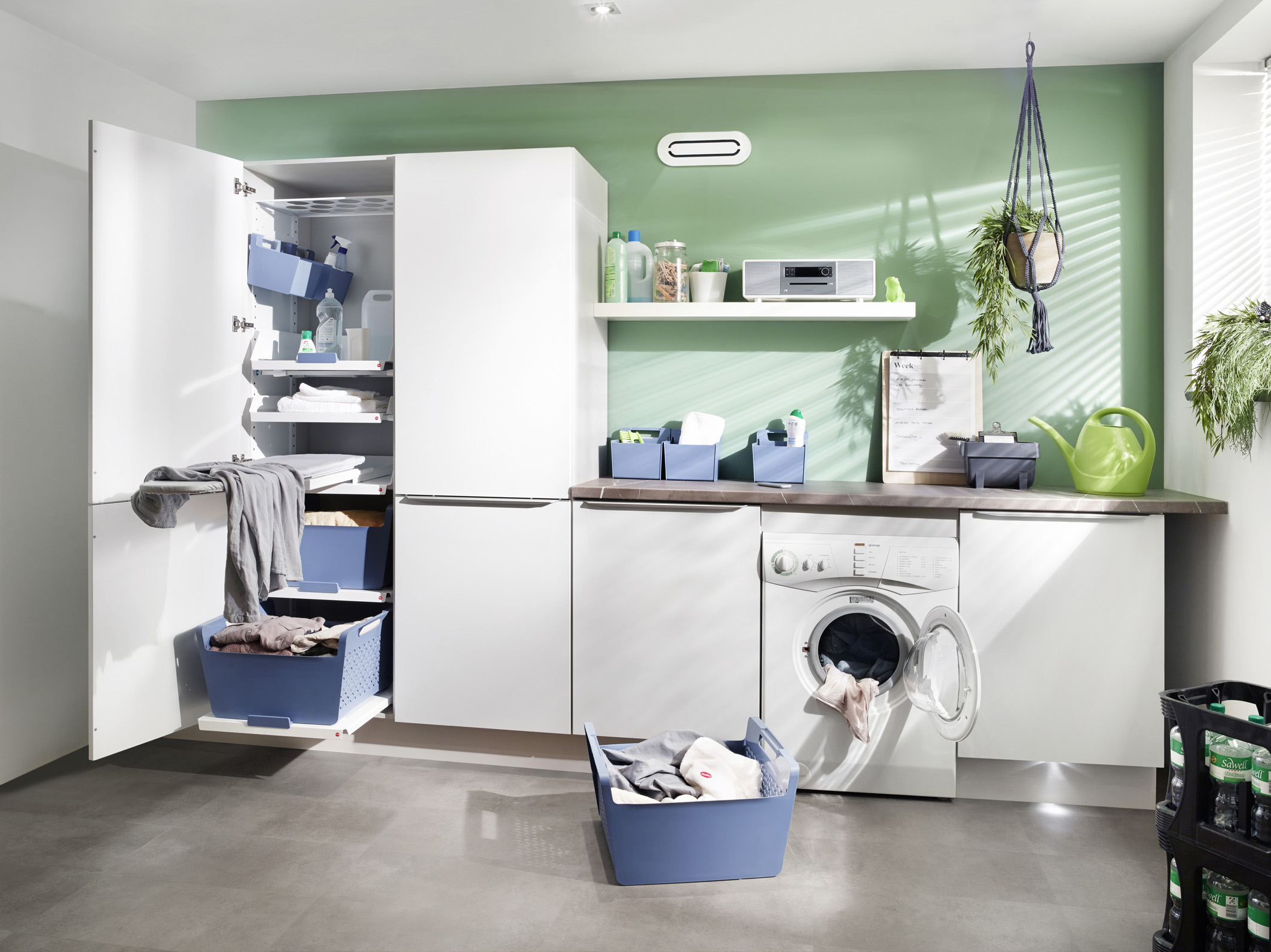 Intelligente und platzsparende Lösungen für den Hauswirtschaftsraum. (Foto: AMK)