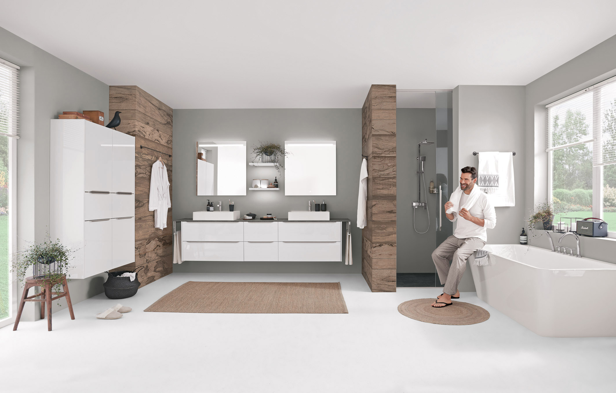 Neue Sortimentsbausteine haben immer mehr Küchenhersteller auch für das Badezimmer im Angebot. Die individuell geplante Badmöblierung soll einen immer wohnlicheren Charakter aufweisen. Bei Waschtischen, Regalen und Badschränken sind Holz-Optiken, hochglänzende und matte Oberflächen oder moderner Beton angesagt. (AMK)