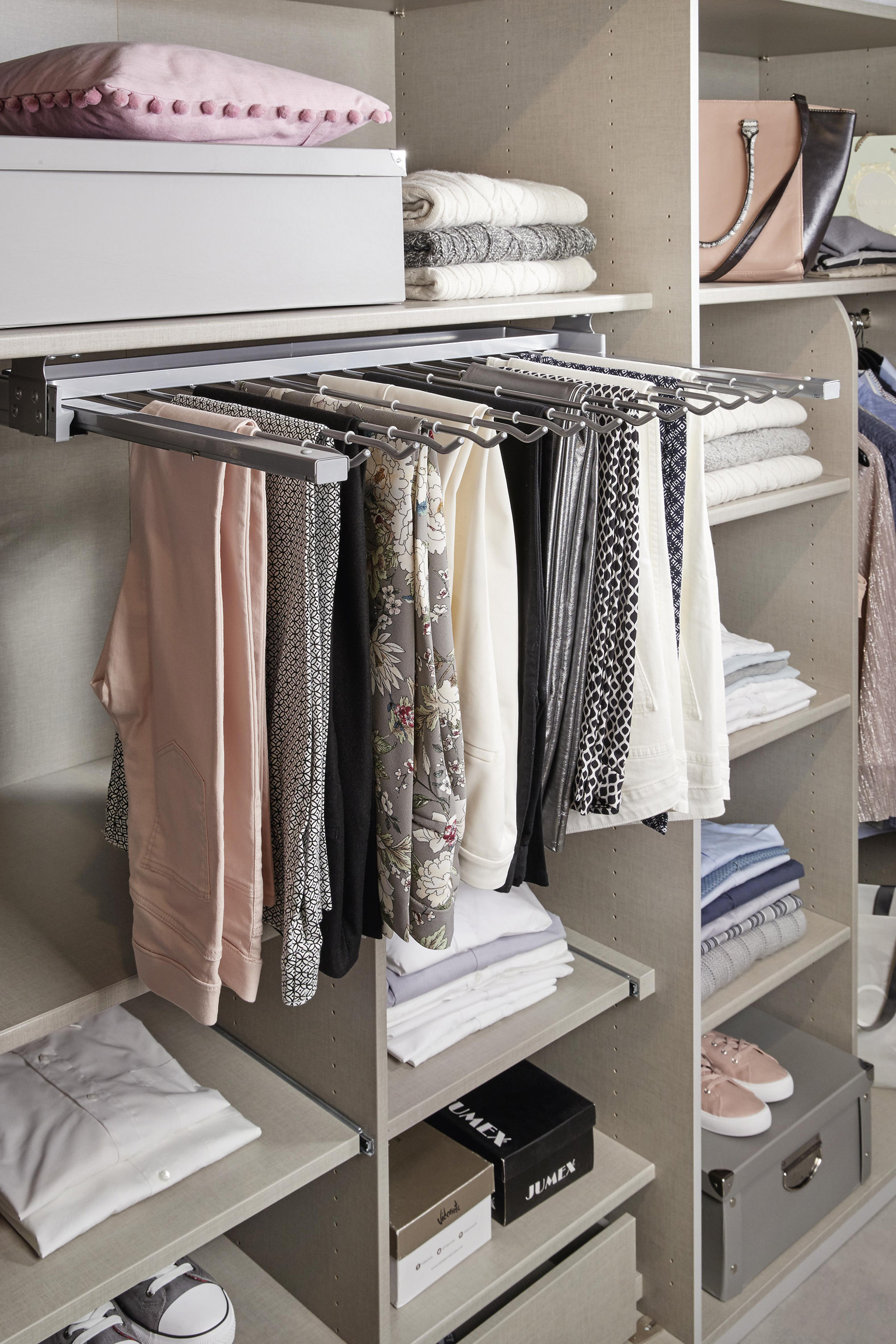 Bild 3: Das Innenleben der Schränke erfüllt die persönlichen Aufbewahrungsbedürfnisse. Foto: VDM/Rauch Möbelwerke